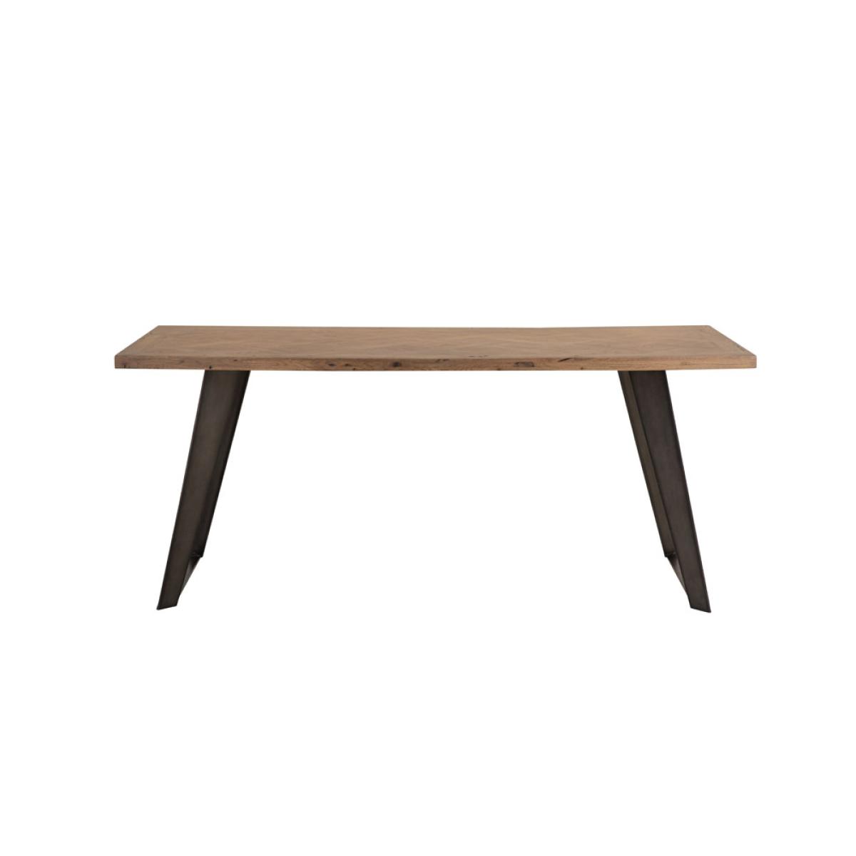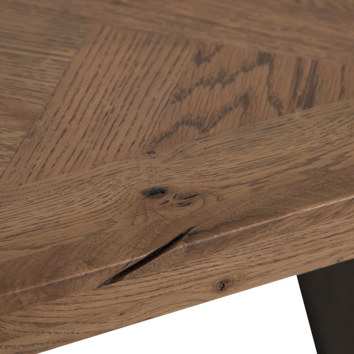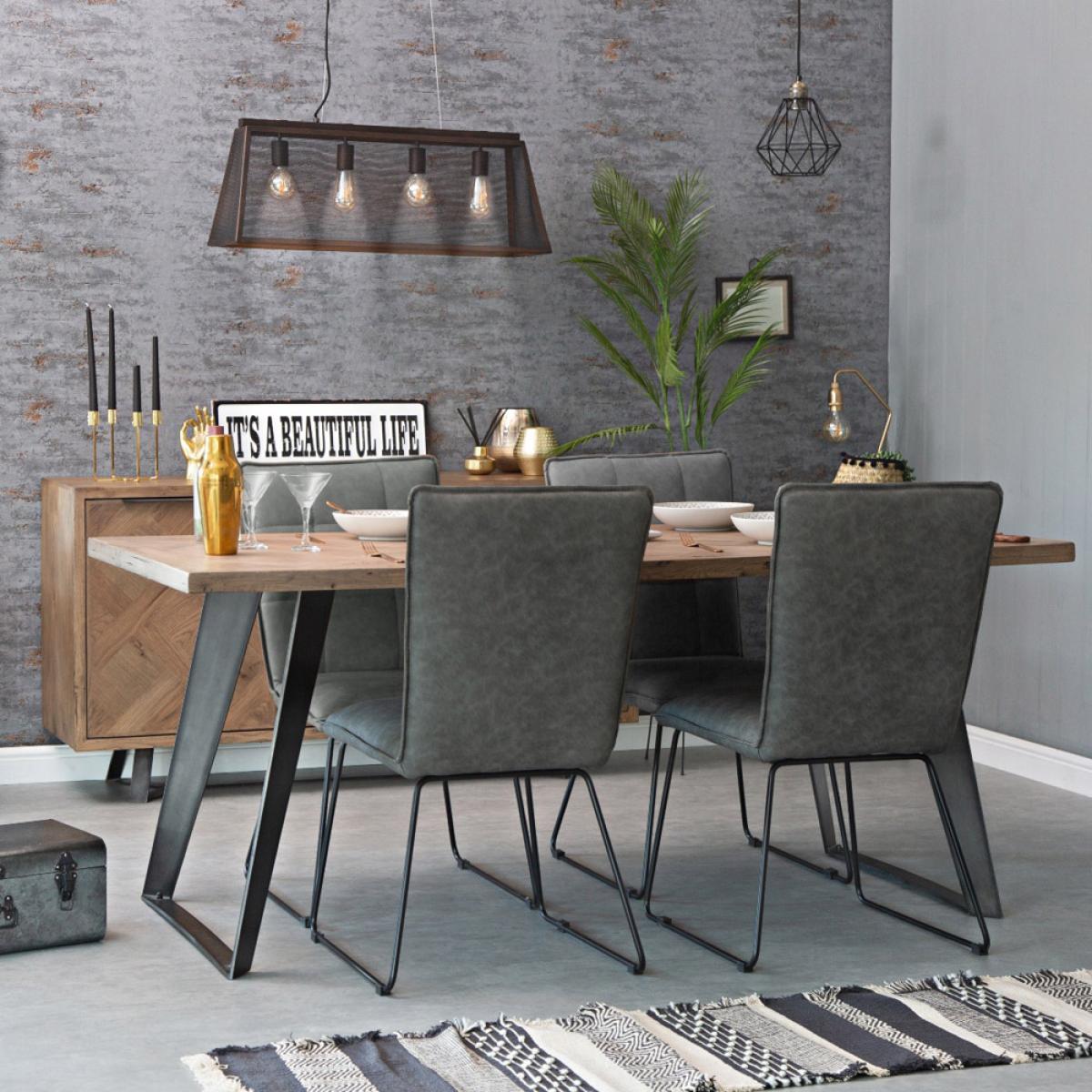 Table Only. Chairs are for illustrative purposes only and can be purchased separately. Seating your guests in style really does set the tone for the evening ahead, so why not really push the boat out and enjoy it? That was what we thought when we started designing the Industrial Oak 1. 4 m Fixed Top Dining Table, and we couldn't be more delighted with the way it's all come together. The striking oak top and signature pattern contrast with the industrial legs to create a statement Dining Table that will catch every eye as they make their way to their seats. All that's left is to explore the rest of our collection to pick out the matching dining chairs that will complete the picture.