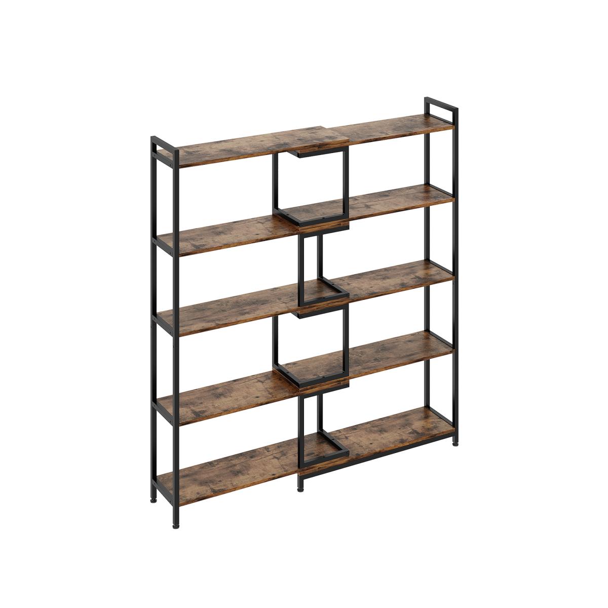 Bring style and practicality to your home with this elegant display rack. Its multi tier design provides ample room for books files and other essentials helping you keep your space neatly arranged. Display ornaments or plants to add visual appeal while the clever rotating and foldable design adapts to your needs saving space when required perfect for smaller homes. Made with a rustic chipboard finish for vintage character and a sturdy black iron frame for industrial charm it complements a wide range of interiors. Suitable for living rooms studies and bedrooms it offers a blend of function and timeless style creating a smart and attractive storage solution.