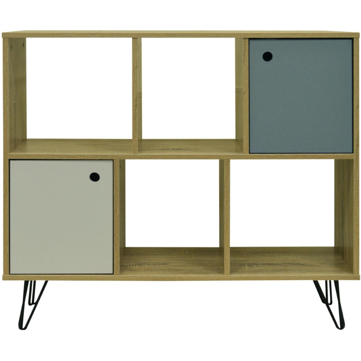 INDUSTRIAL - Open Sideboard Shelving LP Vinyl Storage - Oak - Oak / Black / Blue / White