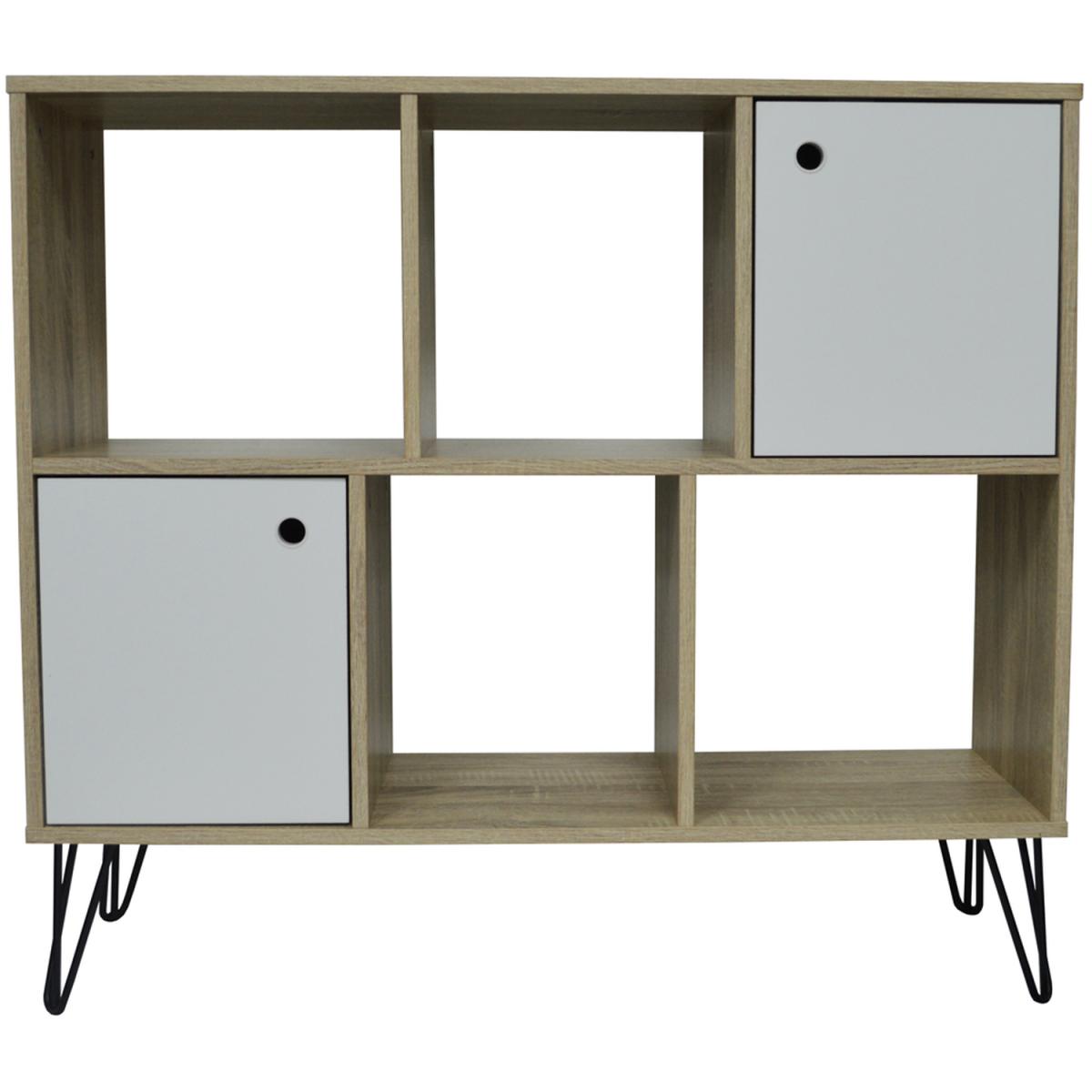 This classic open cupboard has nods to industrial styling but can still suit a wide variety of home decor themes. With sturdy hairpin metal legs and thick wood effect board frame it is easy to assemble too. The cupboards measure 33h x 28w x 27d cm and there are four cubby shelves, two of which are 34cm wide and two are 29cm wide - all are 33h x 29d and are ideal for storing vinyl records.