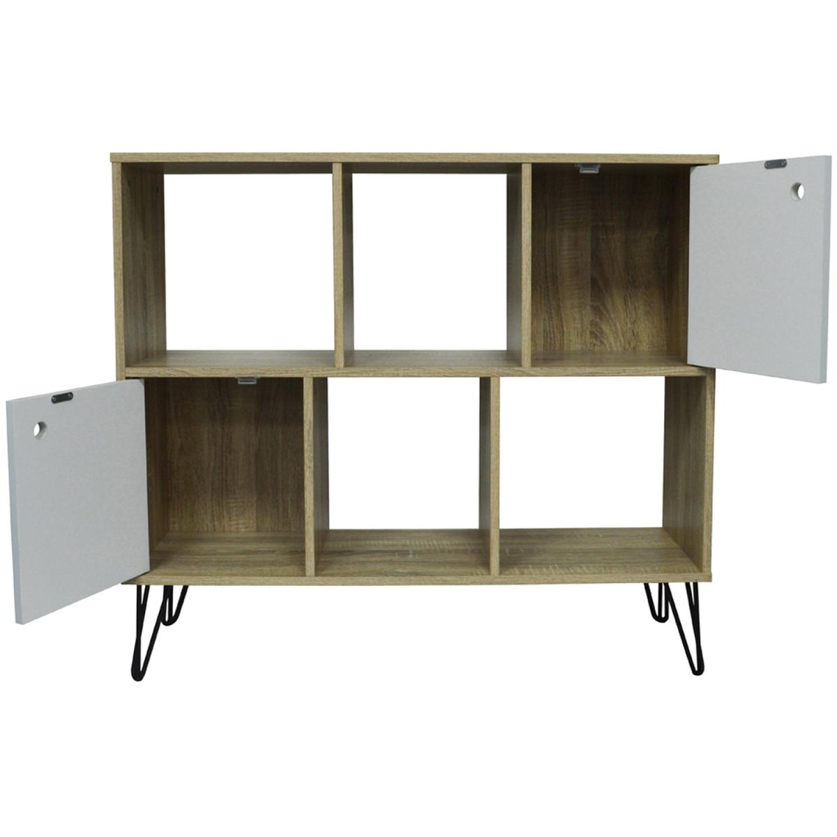 The open sideboard shelving makes this piece a versatile addition, especially for those wanting to display or keep easily accessible items like records or decorative accessories. I love its industrial vibe combined with light oak and white finishes, which makes it suitable for contemporary, Scandinavian, or eclectic interiors. For styling, consider pairing it with vintage record players, potted plants, or minimalist décor to keep a modern look. Practical tip: use the closed compartments for storing less visually appealing items or things you want hidden away, while the open sections can showcase styled objects or favourite vinyls. Its slender legs also help it look less bulky, perfect for smaller spaces or as a statement piece in a living room or hallway.