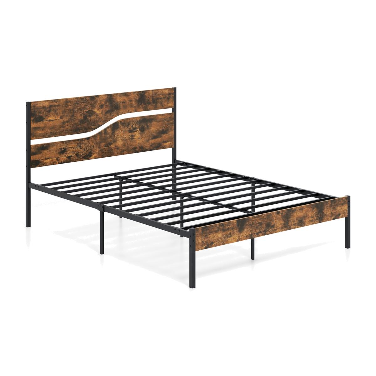 Elevate your bedroom with this heavy-duty platform bed, designed with a sleek wooden headboard and footboard for a sophisticated touch. The bed frame is constructed with powder-coated metal slats, providing reliable support and long-lasting durability. Additionally, the under-bed space can be utilized for shoes, bedding, storage boxes or sweeping machine, helping to maintain a clean and orderly living space. Enjoy a sleek and functional bedroom retreat with this metal bed frame.