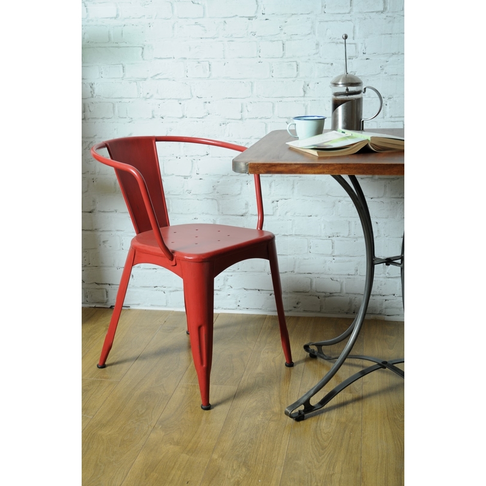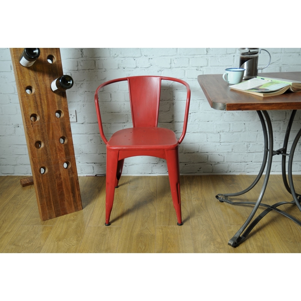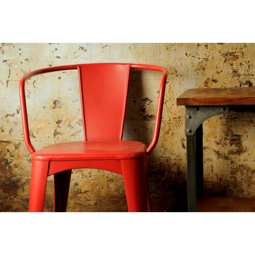 I love this chair for its bold pop of colour and industrial edge, which makes it a standout piece in both contemporary and eclectic interiors. Its military-inspired design lends a rugged, utilitarian feel, perfect for adding character to dining spaces, kitchens, or even casual office setups. To style it effectively, consider pairing with neutral-toned tables or soft textiles to tone down the bold red, or mix with raw materials like wood and metal for a cohesive industrial look. Practical tip: its sturdy build makes it suitable for use in high-traffic areas, and it works equally well as an accent chair in living rooms or open-plan spaces.
