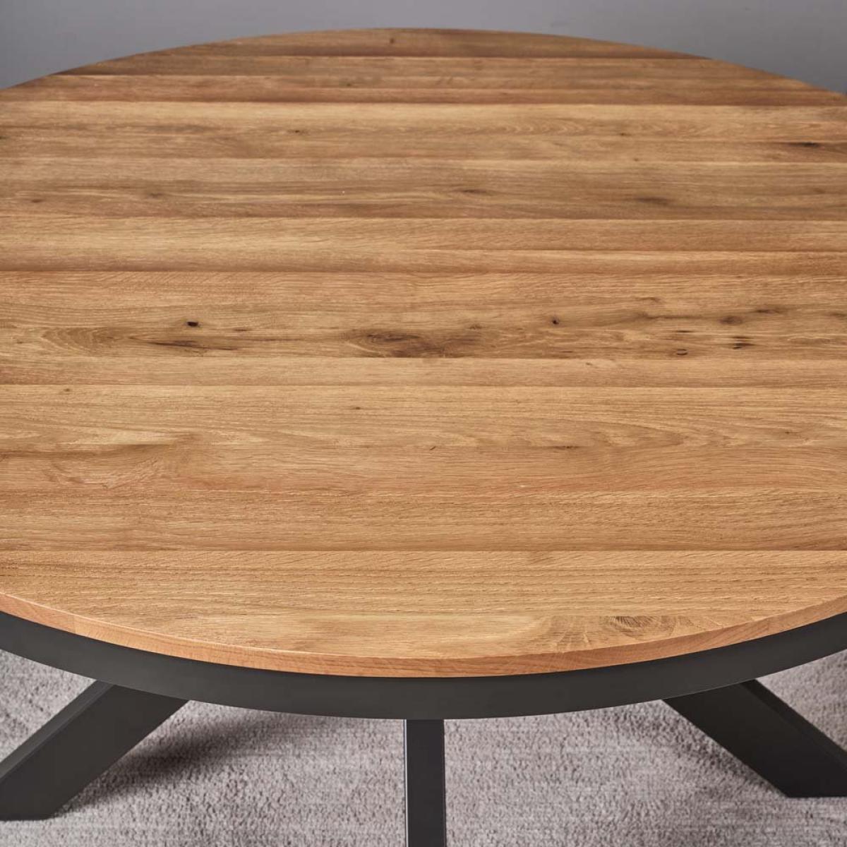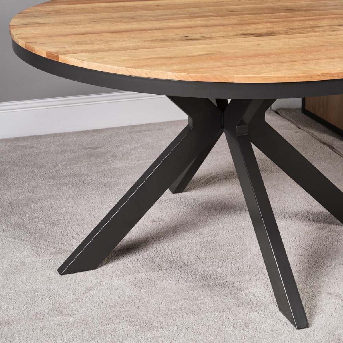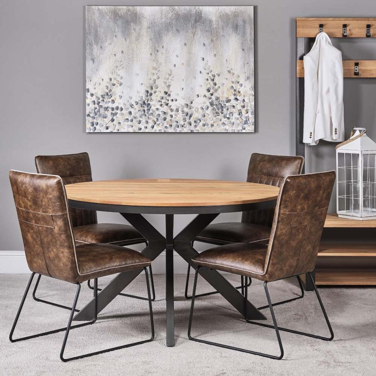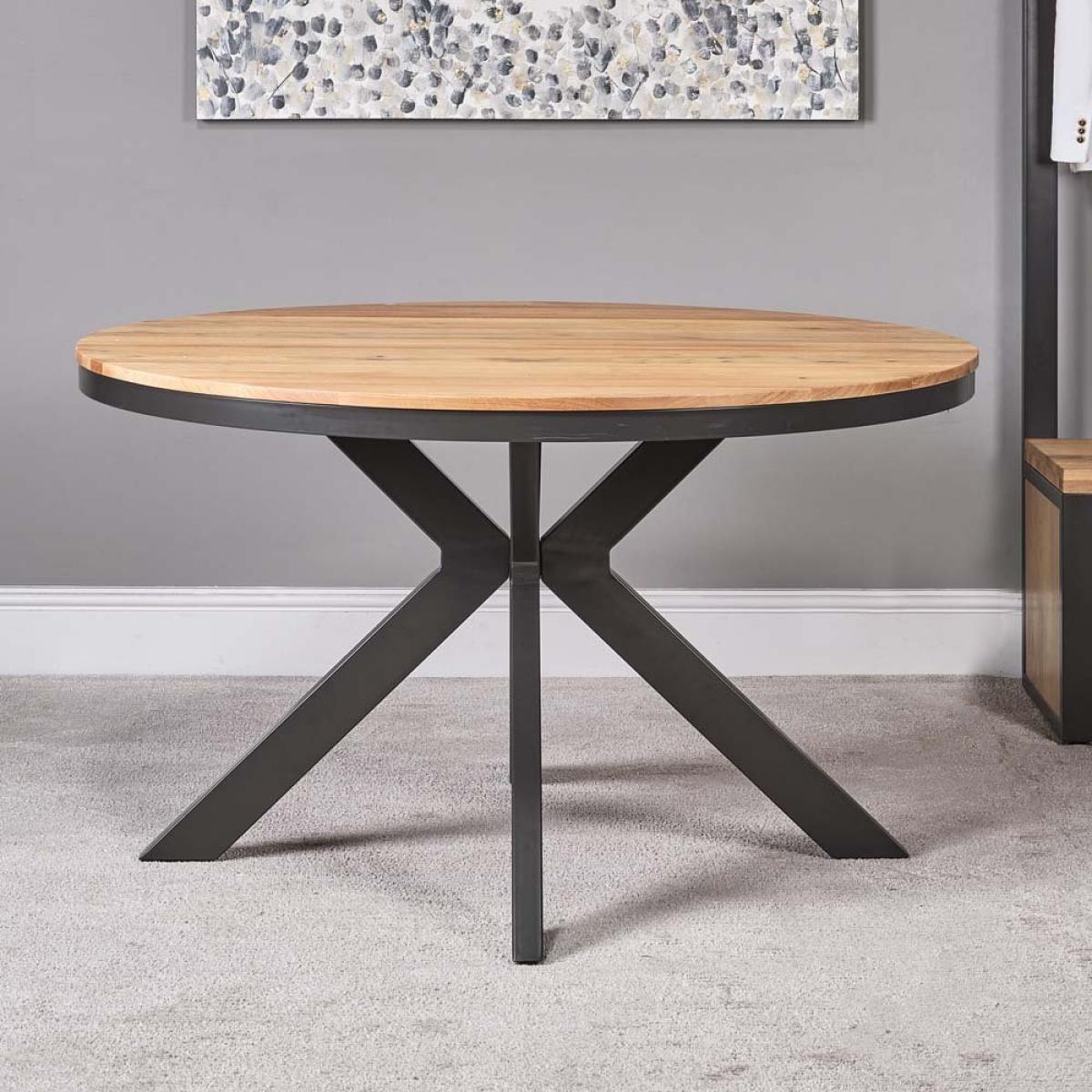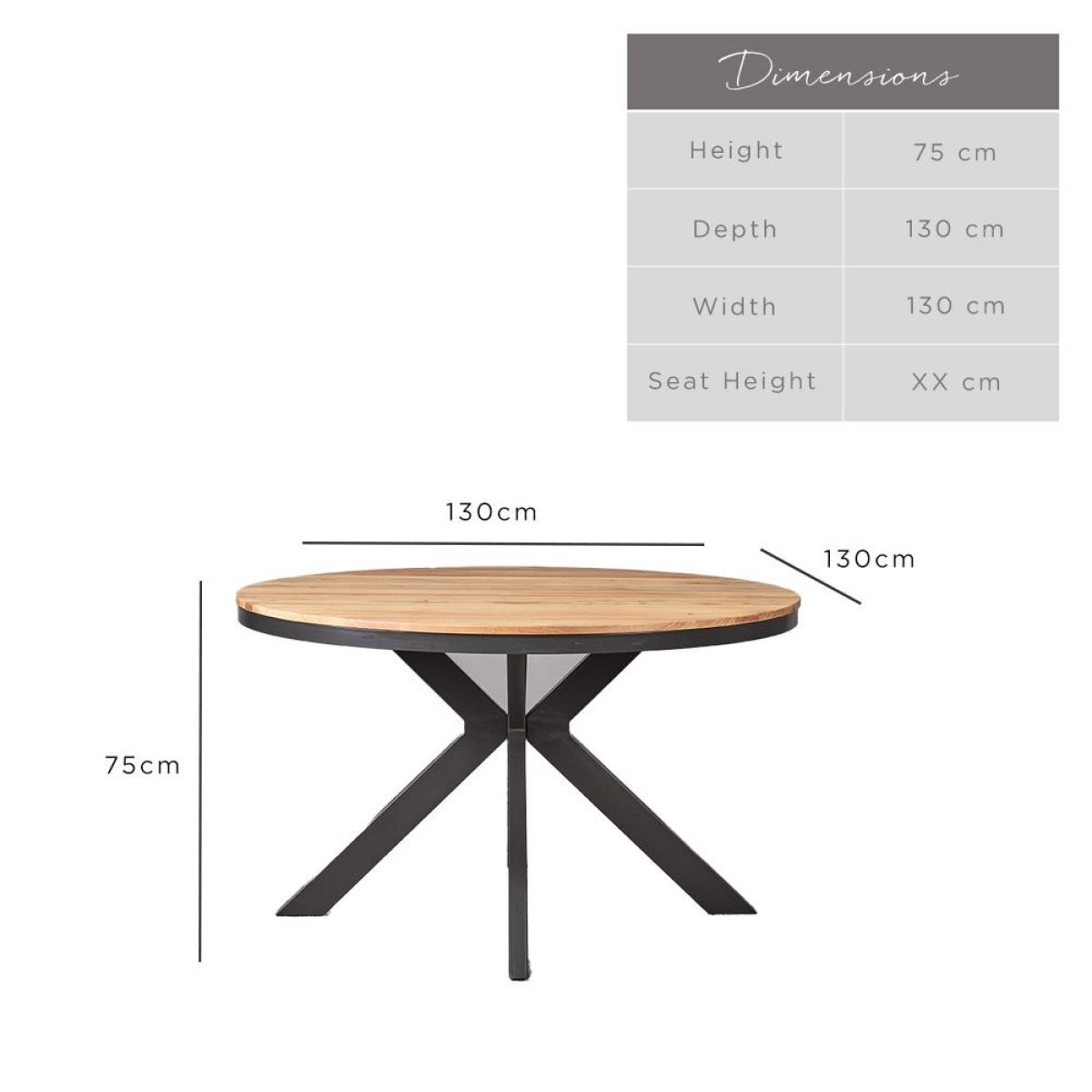 The Industrial Round dining table is a great take on the popular design. A round dining table is a fabulous way to dine and can easily fit 4-6 chairs around it. The table has a robust solid wood top with a simple, metal crossed leg base. This industrial dining table will add modern, industrial style to your home. Add wow-factor to your dining room and jump in with an industrial look.