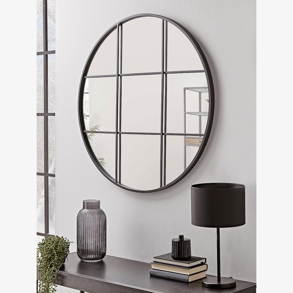 A welcome new addition to our window mirror collection, this industrial style round version has a crittal style black iron frame. Position in a hall, above a console table or in a darker corner to cleverly project light, offer new vistas and create an illusion of space.