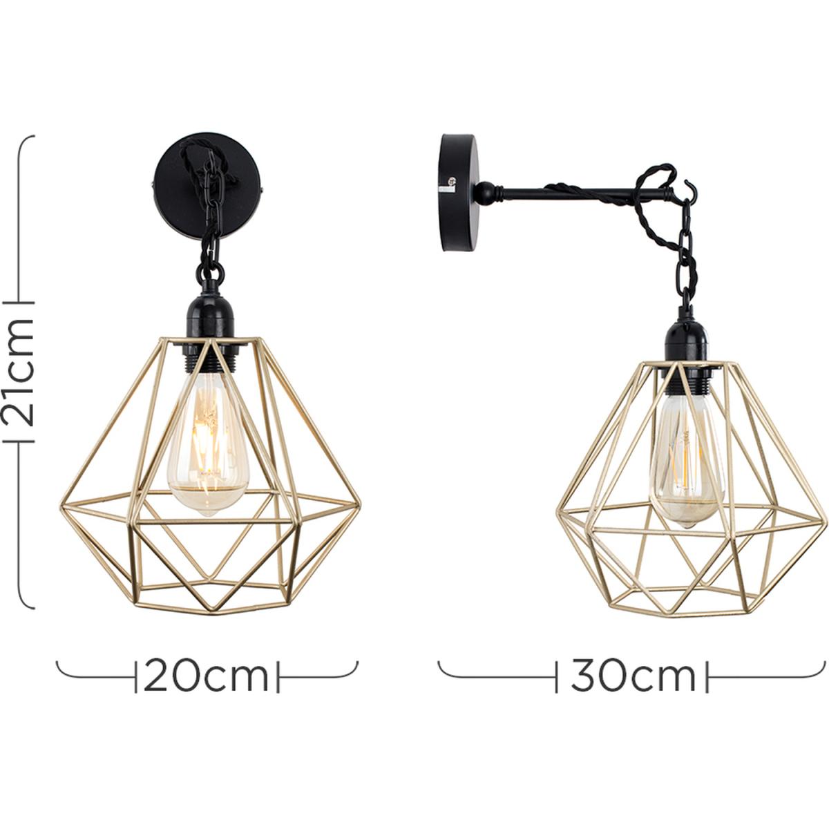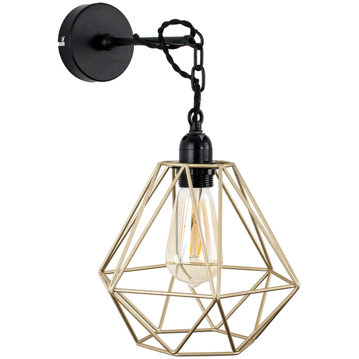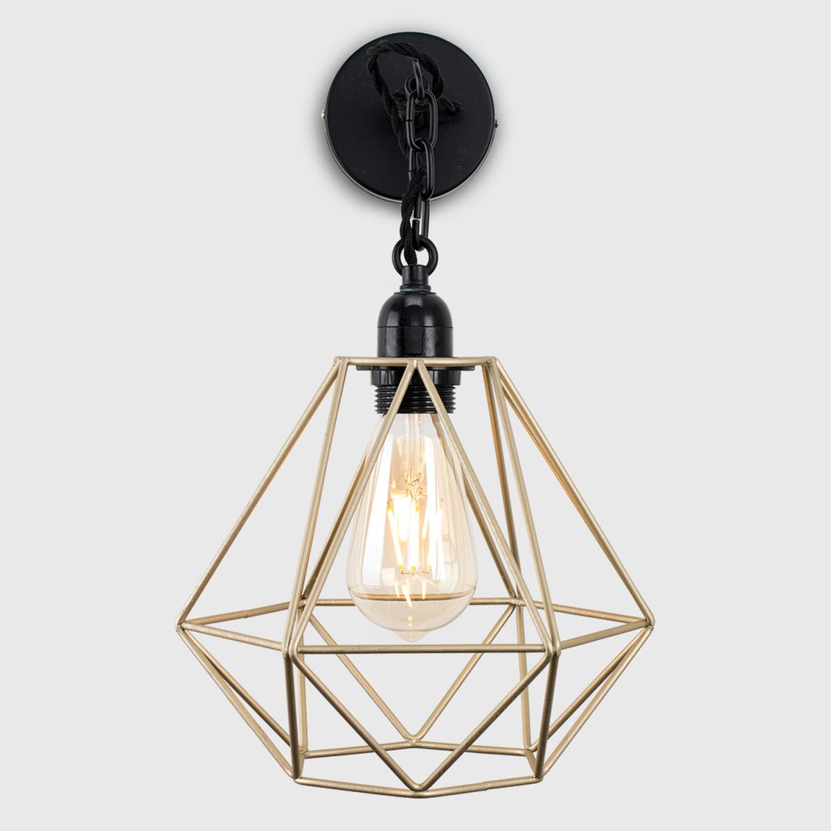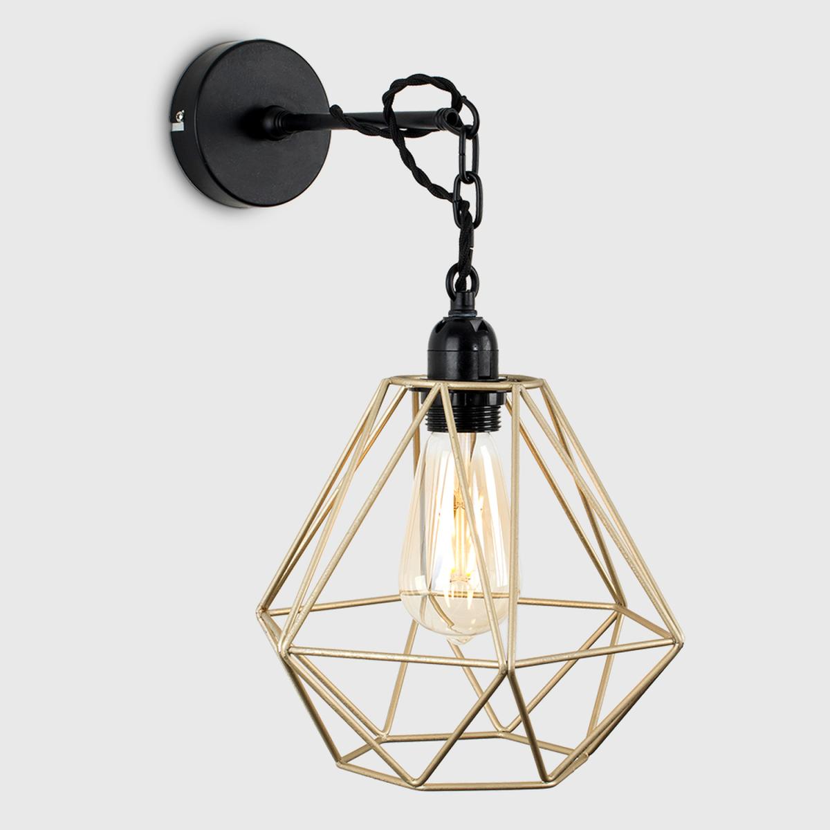 Industrial Satin Black Wall Ceiling Light Fitting With Gold Metal Cage Shade - Black