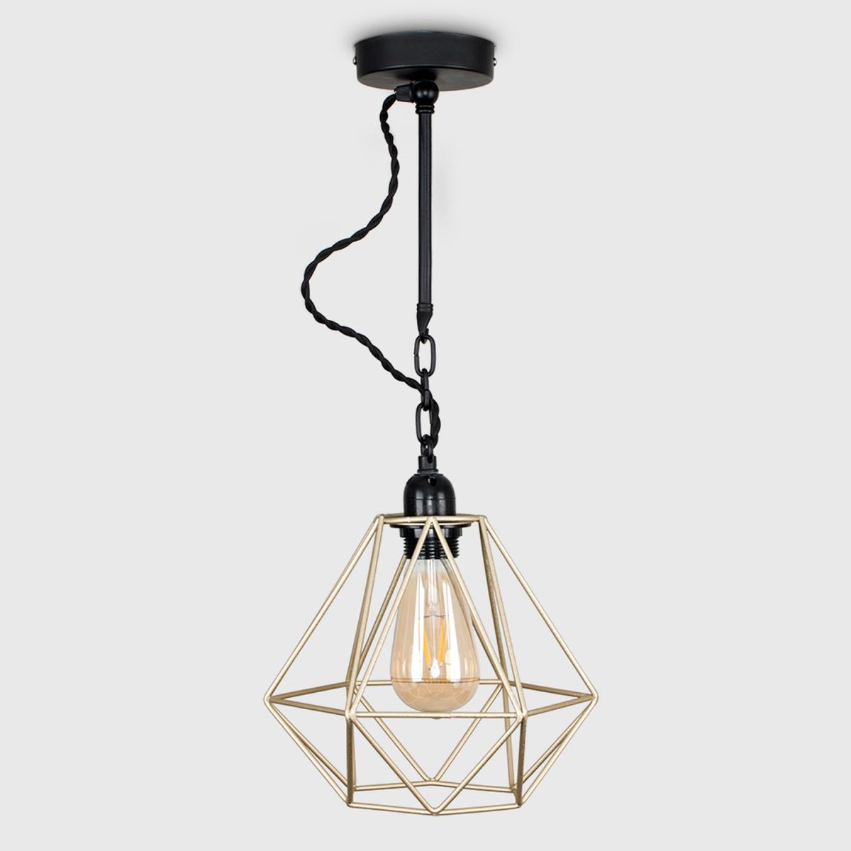 Vintage and industrial style light fitting in a satin black metal finish. This unique light can be used as a wall light or a ceiling pendant fitting. Complete with a gold effect metal basket cage shade which features an open design which allows the light to disperse effectively and evenly throughout the room. This unique light will make a real style statement and complete your living space look. Ideal for dining rooms, kitchens and other living areas.