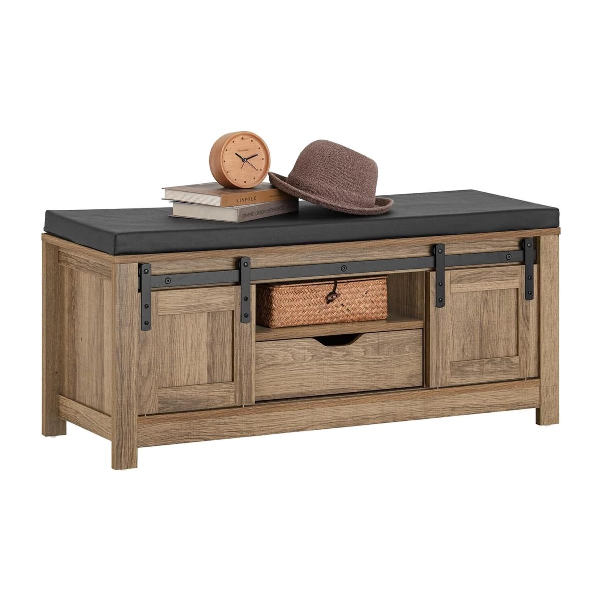 Industrial Shoe Bench with 2 Sliding Doors - Light Brown