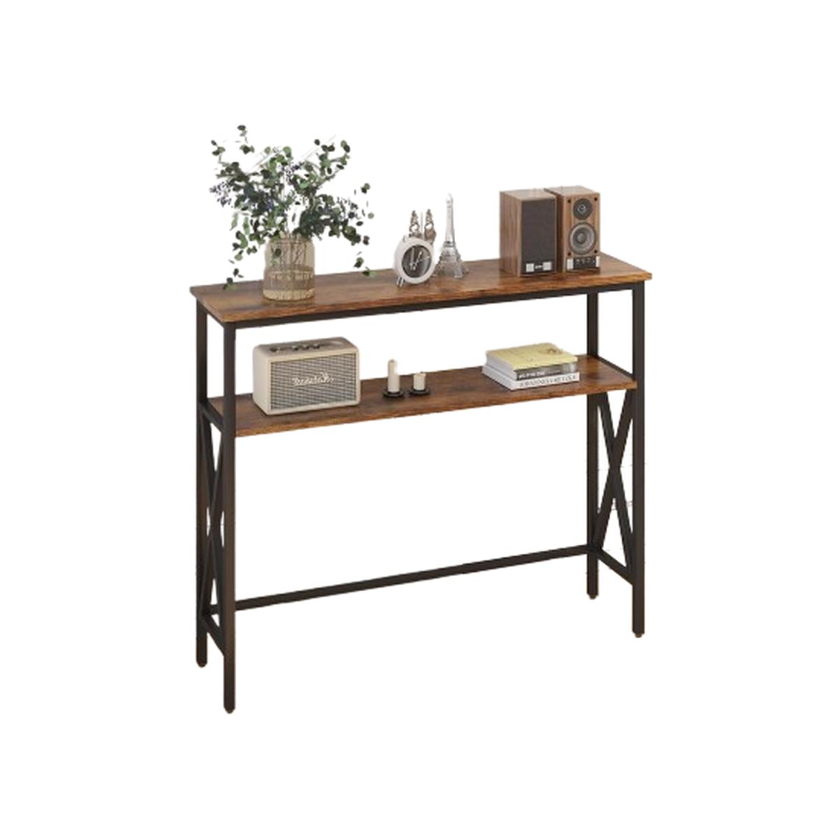 . Featuring an adjustable middle laminate, this versatile table allows you to customize its configuration to suit your storage or display needs. Its sturdy X-frame design not only enhances stability but also adds a stylish, practical touch. Built with user convenience in mind, this console table includes adjustable feet to ensure stability on uneven surfaces and an anti-tilt device for enhanced safety. The table is crafted with a durable engineered wooden top and a robust matte black metal frame, delivering long-lasting performance with a timeless aesthetic.
