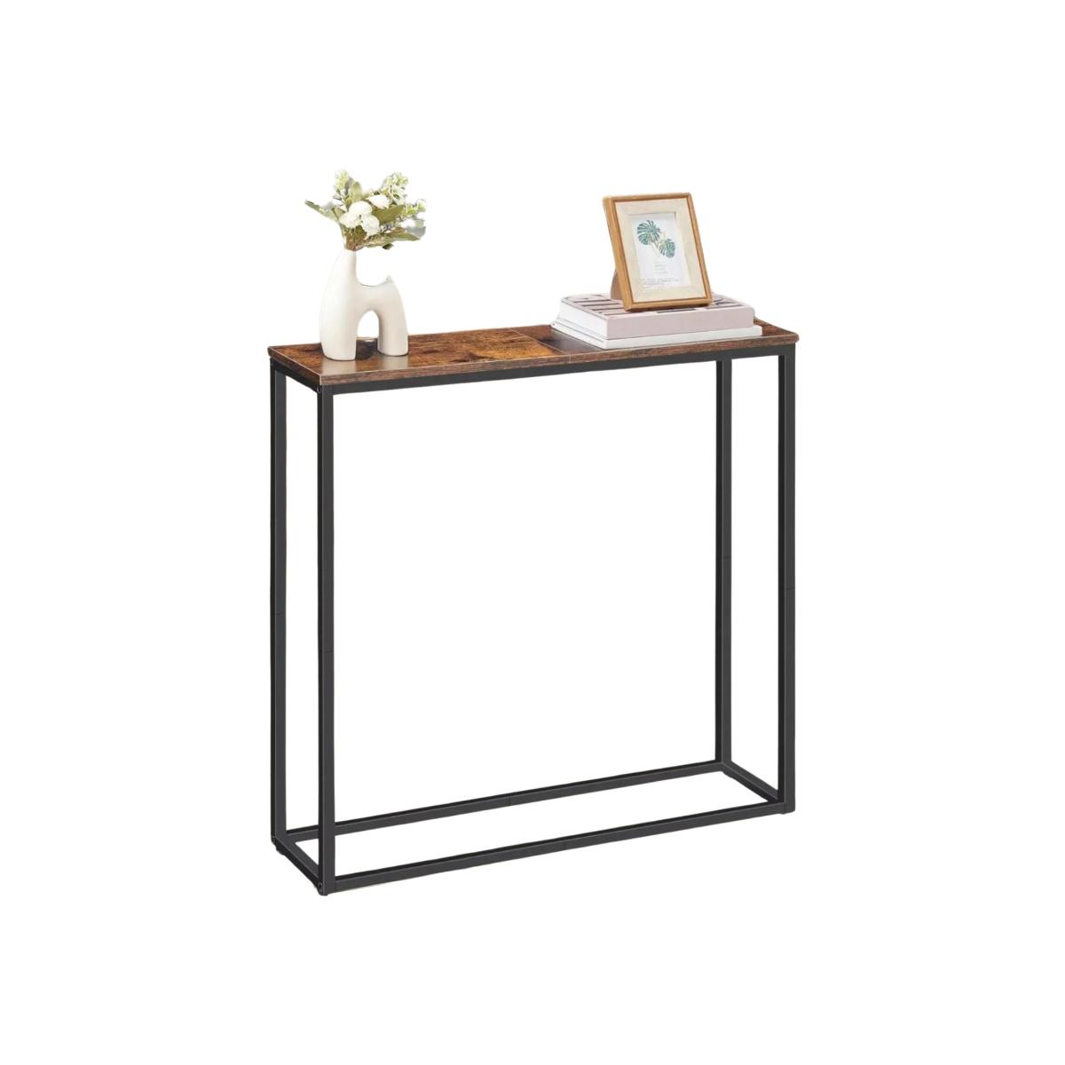 With dimensions of 75 x 20 x 76 cm (L x W x H), this narrow console table is perfectly suited for compact areas such as dormitories and apartments. Its compact design ensures functionality without occupying much floor space. This console table offers multi-scene functionalityit can serve as a convenient hallway table for storing keys and helmets, a stylish display table next to a window showcasing artworks, or even a charming small sofa table in the living room for decorative purposes. Featuring a unique design, this slim console table combines rustic brown tones with classic black accents, creating an eye-catching aesthetic. The smooth surface and distinct pattern evoke the essence of an ink painting, injecting vibrancy into any space. Crafted from high-quality particleboard and metal, this hallway table ensures stability and durability. It is equipped with 4 adjustable feet to accommodate uneven floors, providing a secure and steady placement. Enjoy a hassle-free assembly process with detailed, illustrated instructions and clearly labeled parts. Whether you're a seasoned DIY enthusiast or a novice, you can confidently assemble this console table and appreciate the satisfaction of completing a functional and stylish piece for your home.