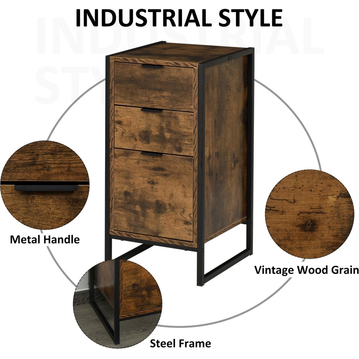Unique, stand-out style done the right way. Bring this storage cabinet into your home for a touch of industrial styling you'll love looking at. Using steel to form the outlining frame, the core structure is solid and tough for reliable everyday use and features two small drawers and one large - giving you plenty of room for storage. Each drawer is fitted with metal handles to open and close easily. It's finished in a rustic multi-brown colouring, which not only looks beautiful, but welcomes itself into your bedroom, living room and other home and office space with ease.