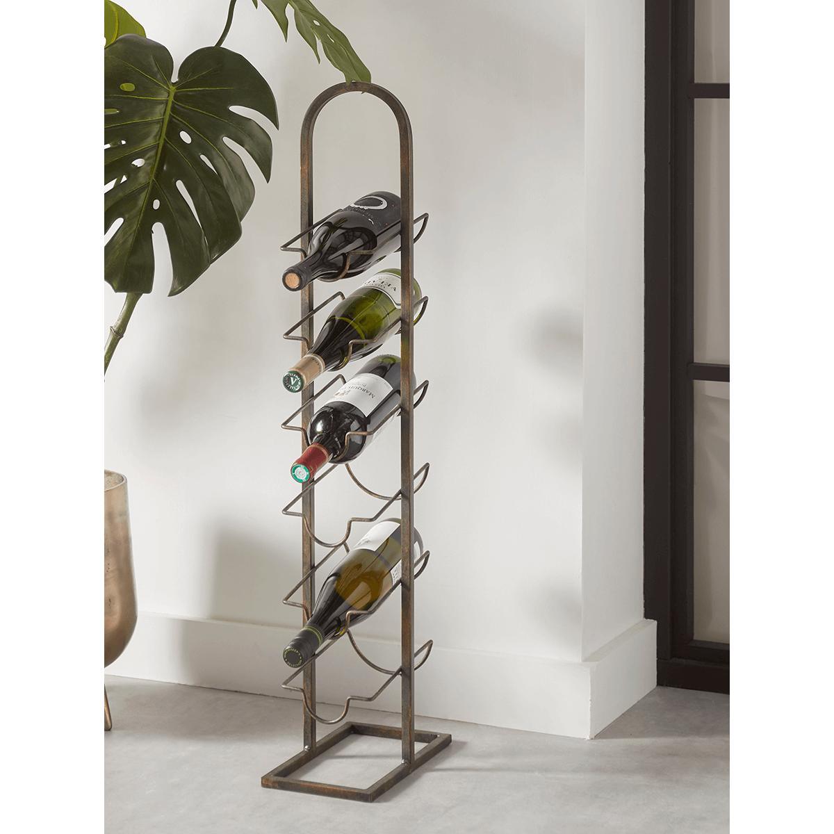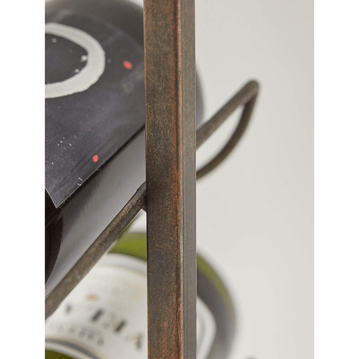 Crafted from antique finished iron in a bold frame form, our freestanding wine rack is perfectly formed to hold up to six standard-sized wine bottles and to be positioned anywhere in your kitchen, dining space.