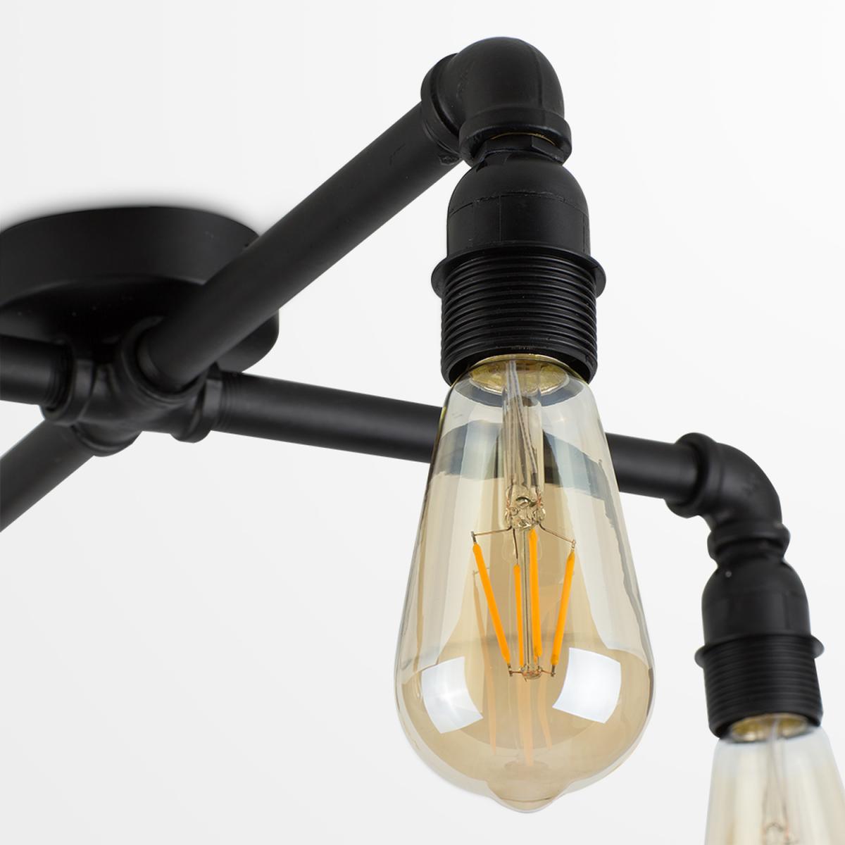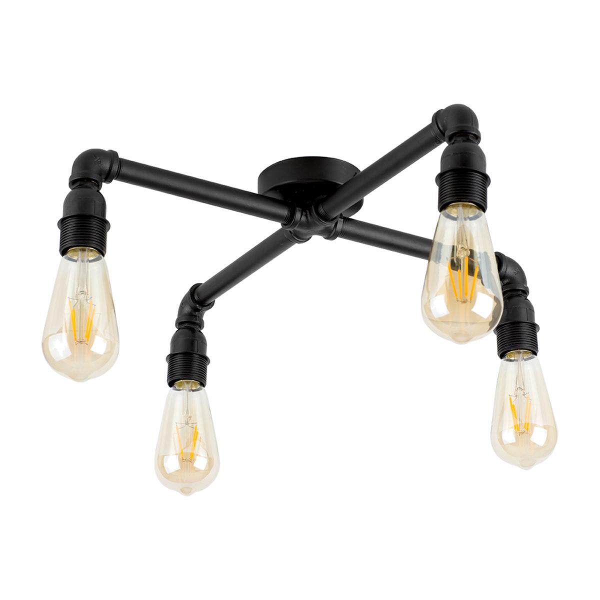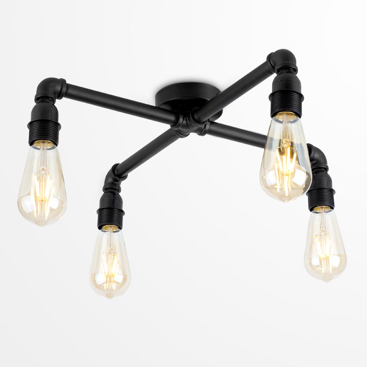Vintage and industrial style satin black 4 way pipework ceiling light. Ceiling lights are usually the main source of illuminating a room but with the many styles on offer today, also become a main focal point or talking point. This unique light will make a real style statement and complete your living space look. Ideal for dining rooms, kitchens and other living areas.