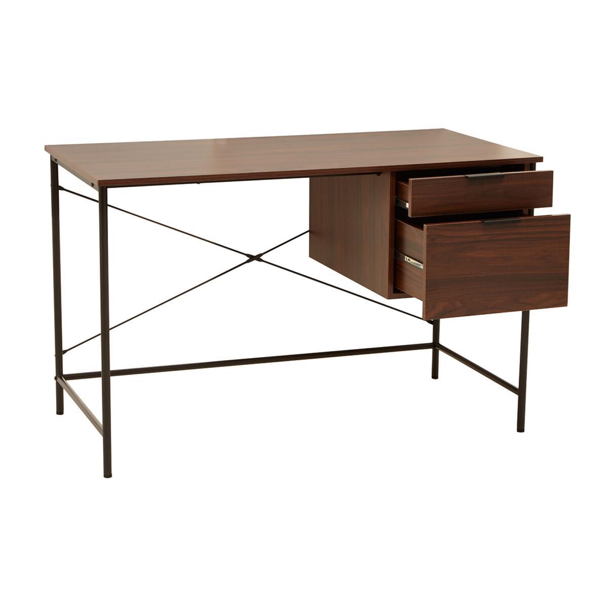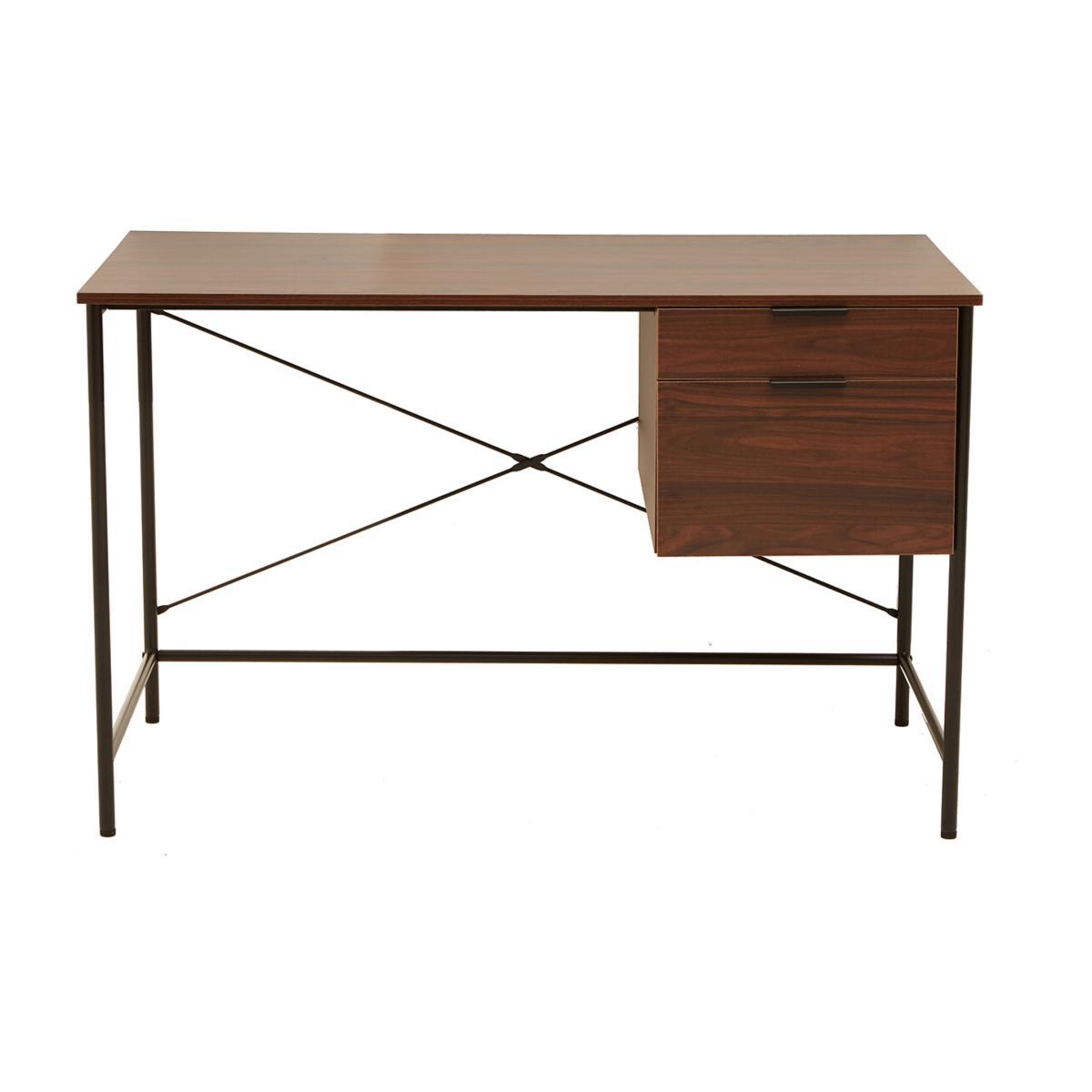 Industrial Style 2 Drawer Desk in Dark Walnut Effect with Black Frame