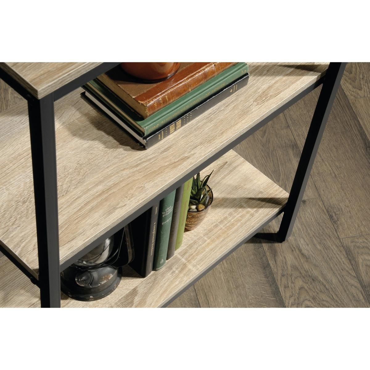 Dimensions W59.6cm x D29.2cm x H77.4cm Features. Home office industrial style 2 shelf bookcase. Sharp minimalist design. Generous shelves finished in charter oak effect. Durable black metal frame360 degree all round finish. Assembly Required..