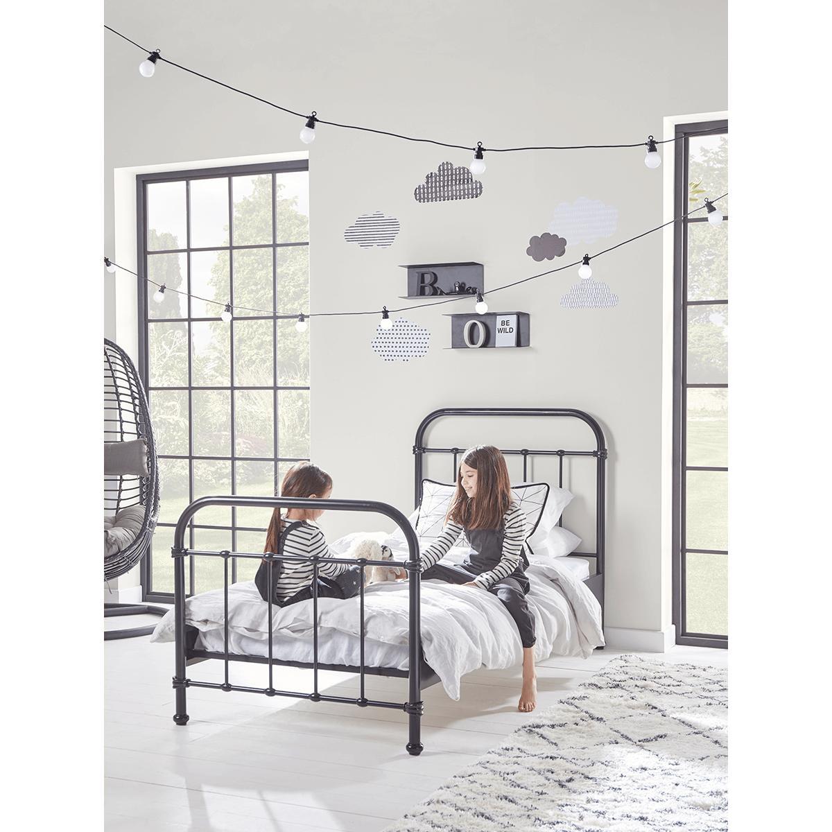 I love this black industrial-style bed for its robust white detailing and versatile appeal. It works exceptionally well in modern, minimalist, or even eclectic interiors, adding a subtle yet edgy statement to a child's room. Its simple metal frame makes it a fantastic blank canvas for styling with colourful bedding, patterned cushions, or themed accessories. Practical tips include pairing it with soft textiles to soften the industrial edge and using wall-mounted storage or shelving to maximise space. The dark finish offers durability and a sleek look that grows with a child, making it both a stylish and functional choice.