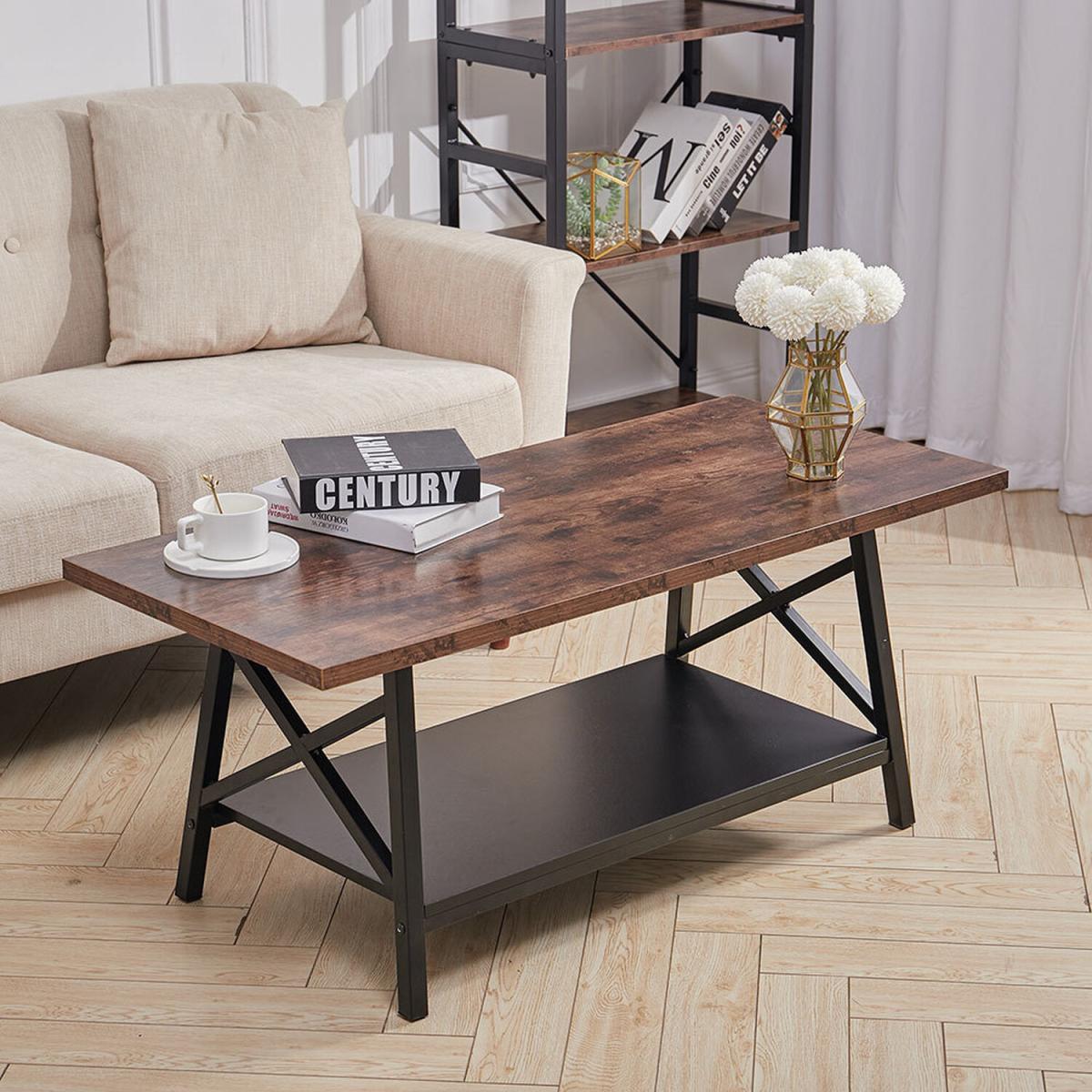 Industrial Style Coffee Table X Shape Metal Frame - Brown