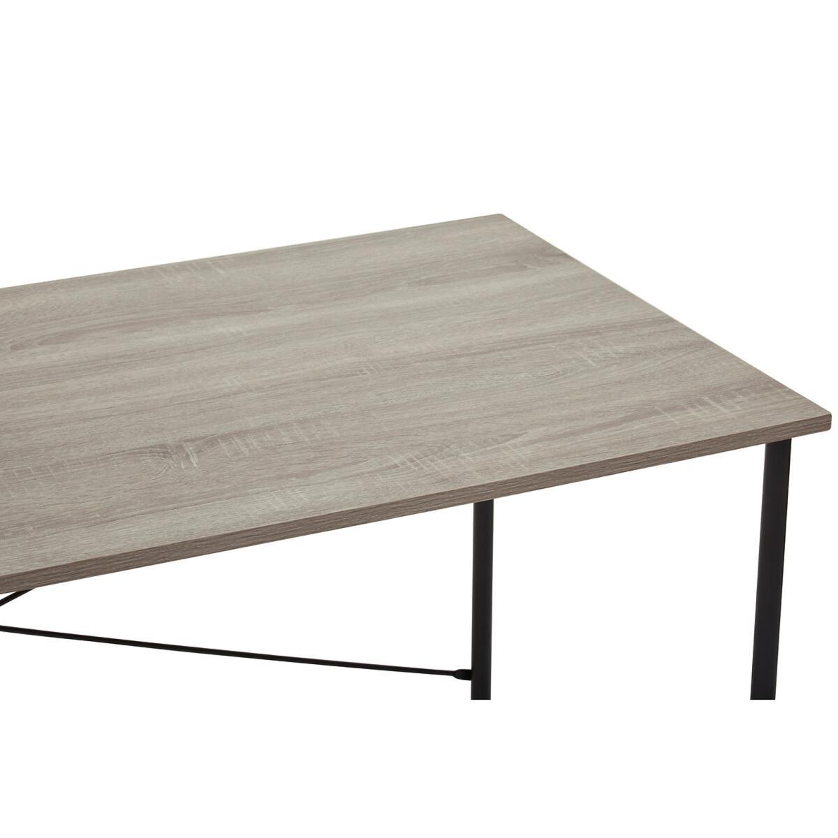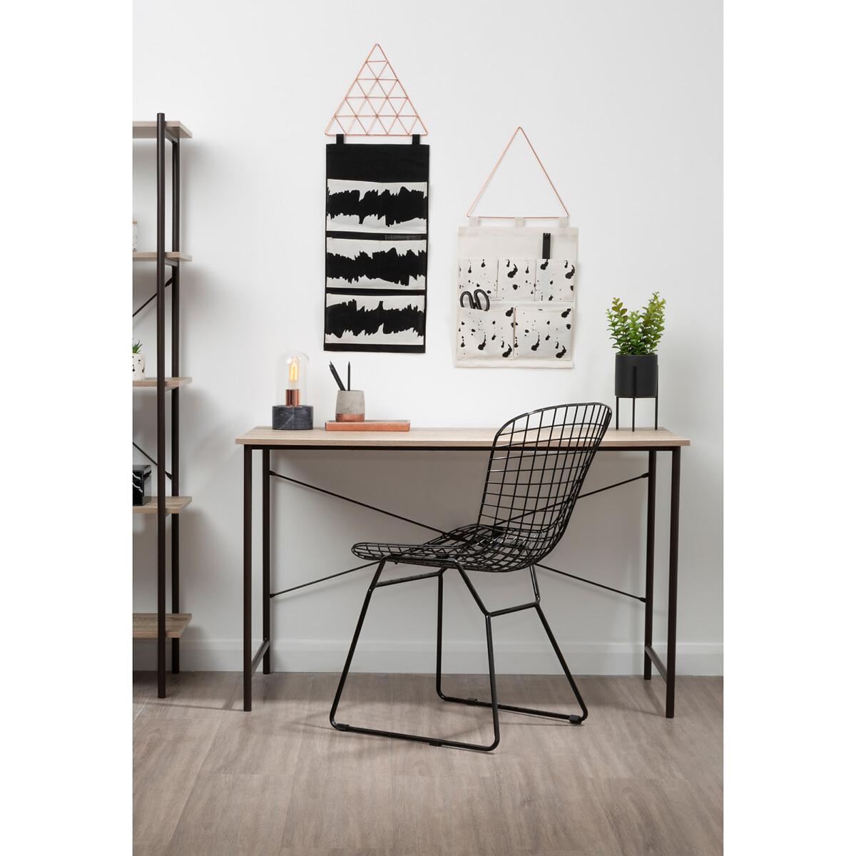 I really like this industrial desk for its slim, no-fuss frame and neutral grey-oak finish - it slips easily into urban lofts, Scandi-style studies or even a minimalist home office. The dark-brown metal legs give just enough structure without making the room feel crowded, so it works well in compact spaces as much as larger ones. For styling, keep accessories simple: a matte-black desk lamp, a single potted plant and a stack of notebooks look smart without cluttering the surface. Use the neutral top as a backdrop for a couple of slim art prints or a floating shelf above, and introduce a soft wool rug underneath to soften the industrial lines.