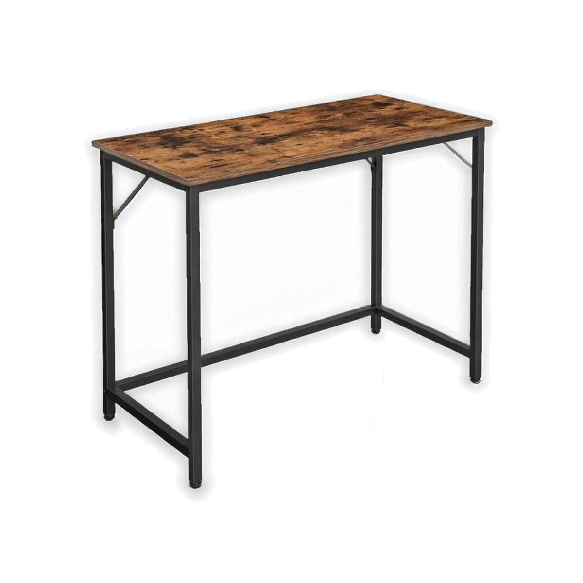 The rustic brown finish and minimalist black steel frame create a versatile industrial aesthetic, perfect for modern and vintage decor. Reinforced steel struts beneath the tabletop ensure outstanding support. This desk can hold up to 50 kg, making it ideal for your laptop, books, and work essentials. At just 100 cm in length, this compact desk fits perfectly into small spaces like apartments, dorms, or home offices without compromising style or function. With easy-to-follow instructions and numbered parts, assembling this desk is a breeze, allowing you to set up your workspace quickly and hassle-free. Specifications: 100 cm (L) x (customizable width and height). Supports up to 50 kg.