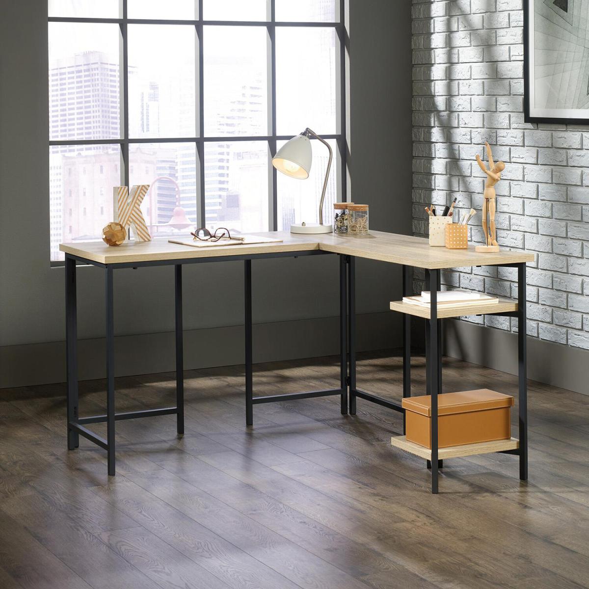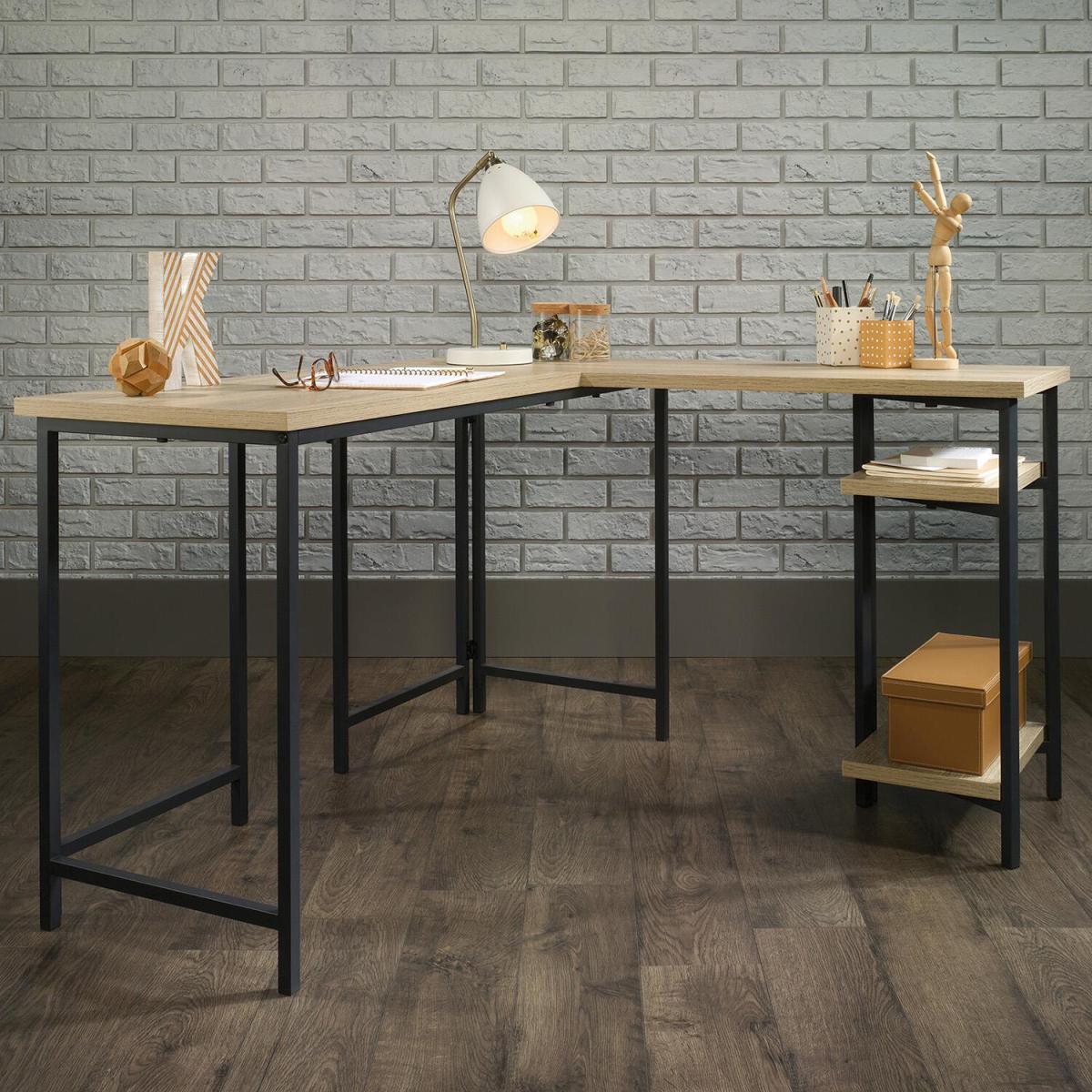 The Industrial Style L-Shaped Desk is a great desk for your home office. The L-shape provides a generous working area and lots of space to spread your notes around, while the industrial style brings a minimalist aesthetic perfect for those who want to focus. Made with a durable black metal frame, this desk comes with an open storage plan and fixed shelving.