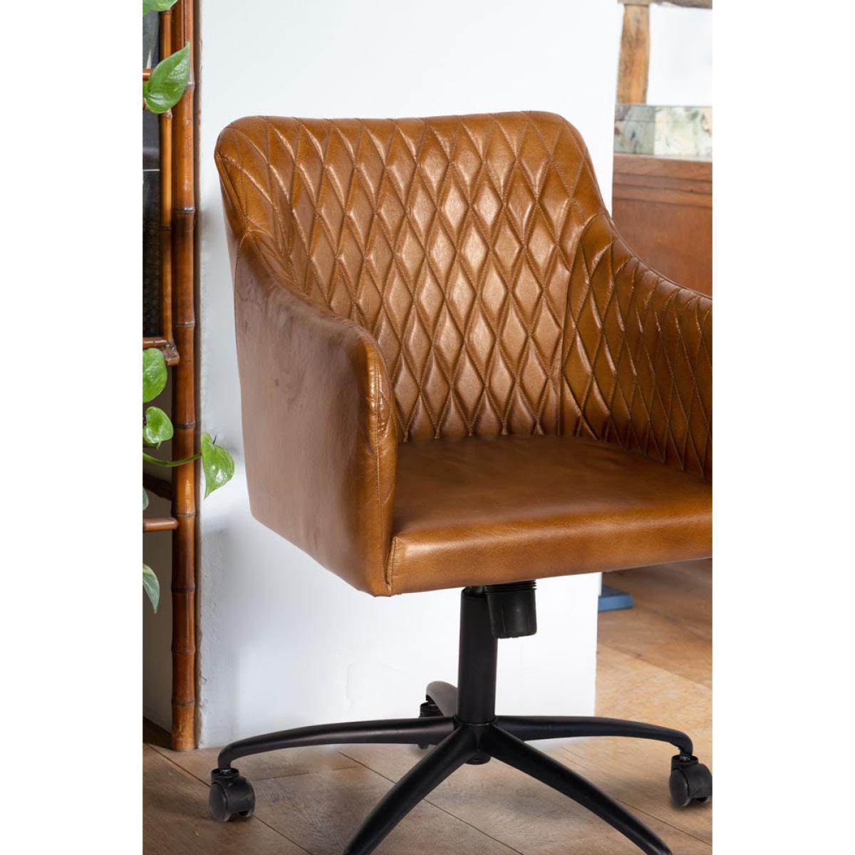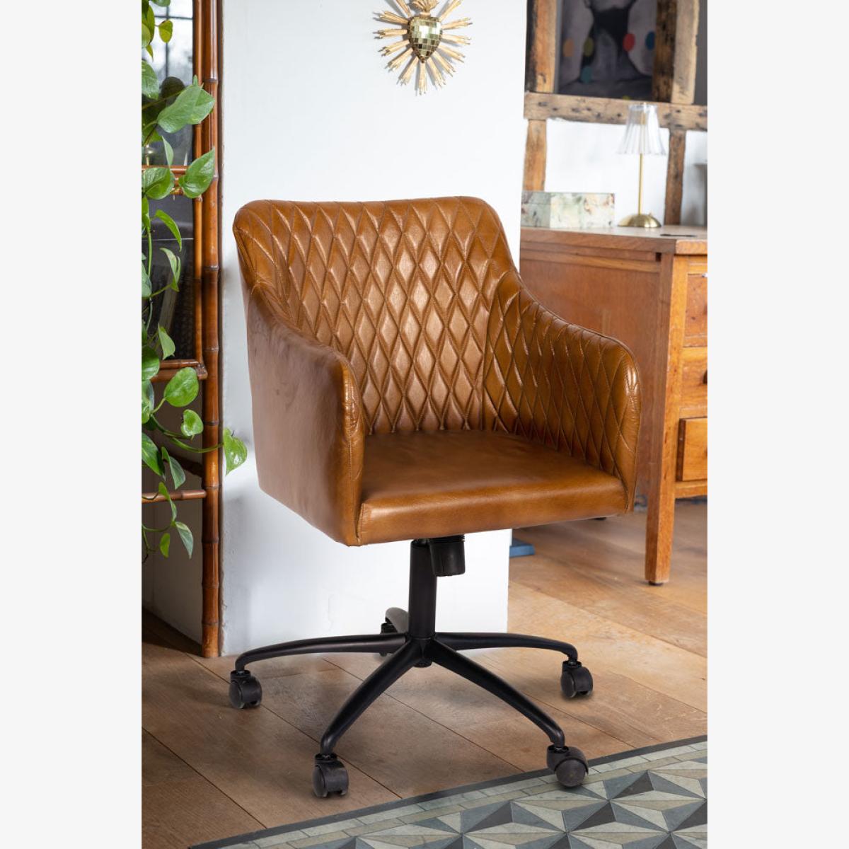 The Industrial-style Leather Swivel Desk Chair is a glorious fusion of sophistication and modern functionality. Crafted in mid-brown leather, with diamond detailing etched in the backrest to add texture and interest, this chair is a stunning statement piece that brings an element of luxury to your home or office space. With a sturdy metal frame, this chair features wheels and a spinning mechanism, adapting perfectly to your dynamic work environment (and brilliant for when you fancy a little bit of twist and shout between work calls). Deep-seated, supportive and super-comfortable, this is a statement piece that works against myriad interior styles, whether you tend more towards a Scandi look or a bold, bright space. Just gorgeous. - Industrial-Style Leather Swivel Desk Chair - Material: Leather - Measures: H86cm x W55cm x D60cm