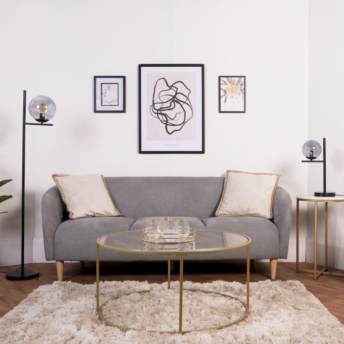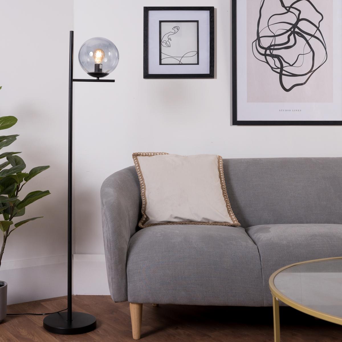 I love this floor lamp for its sleek, industrial vibe that combines matte black metal with smoked glass, making it a versatile piece for contemporary or loft-style interiors. It works especially well in minimalist settings or around neutral palettes, where its subtle yet impactful presence can truly shine. For styling, consider placing it next to a cosy armchair or beside a large sofa to create a perfect reading nook, and use warm bulbs to complement the smoked glass shade’s tint. To keep its aesthetic balanced, pair it with other black or metallic accents, and avoid overcrowding the space to let its simple elegance stand out.