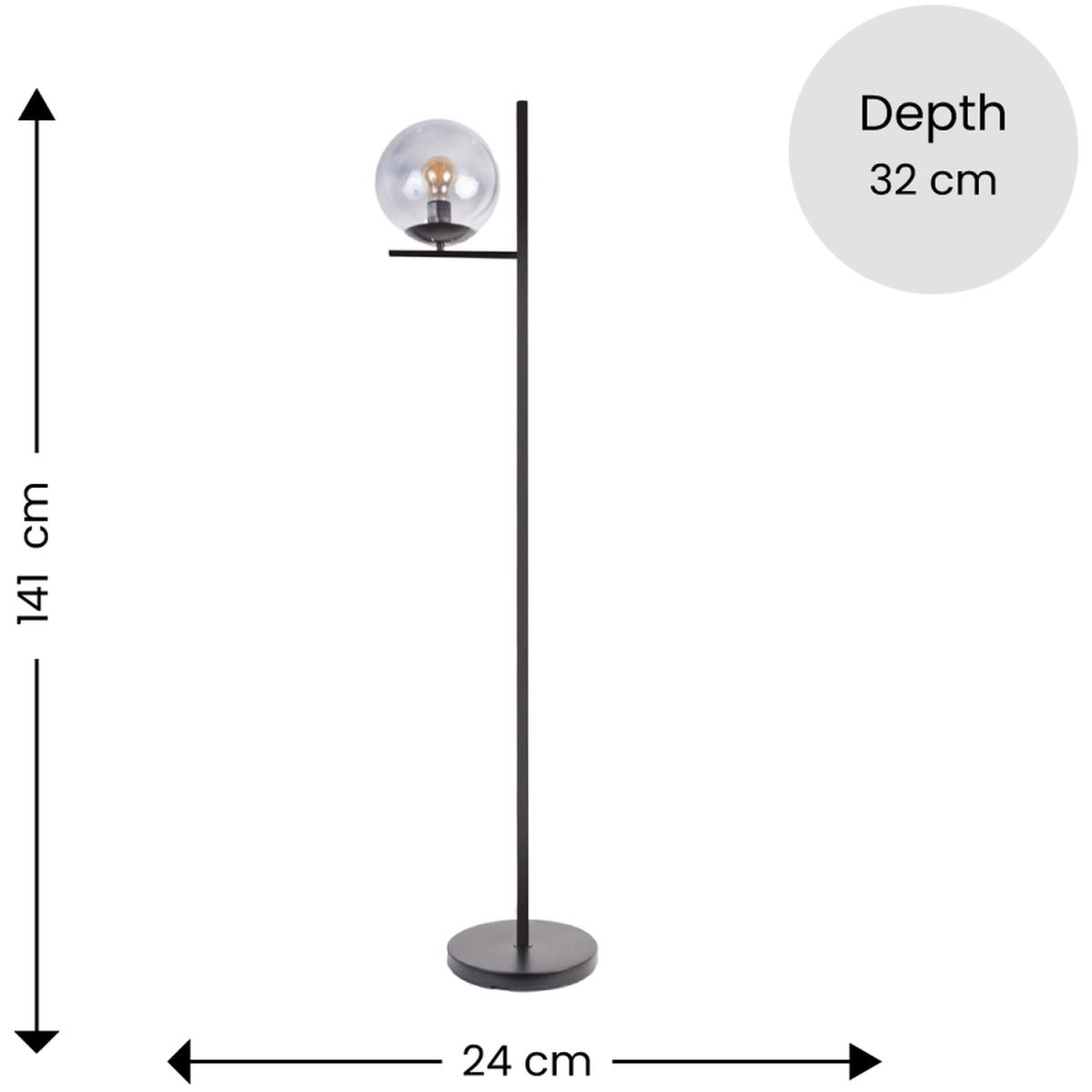 Industrial Style Matt Black Metal Standing Floor Lamp With Smoked Glass Shade - Matt Black
