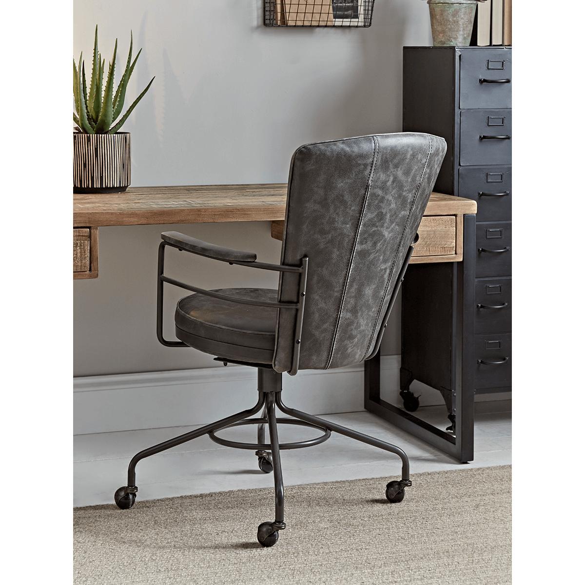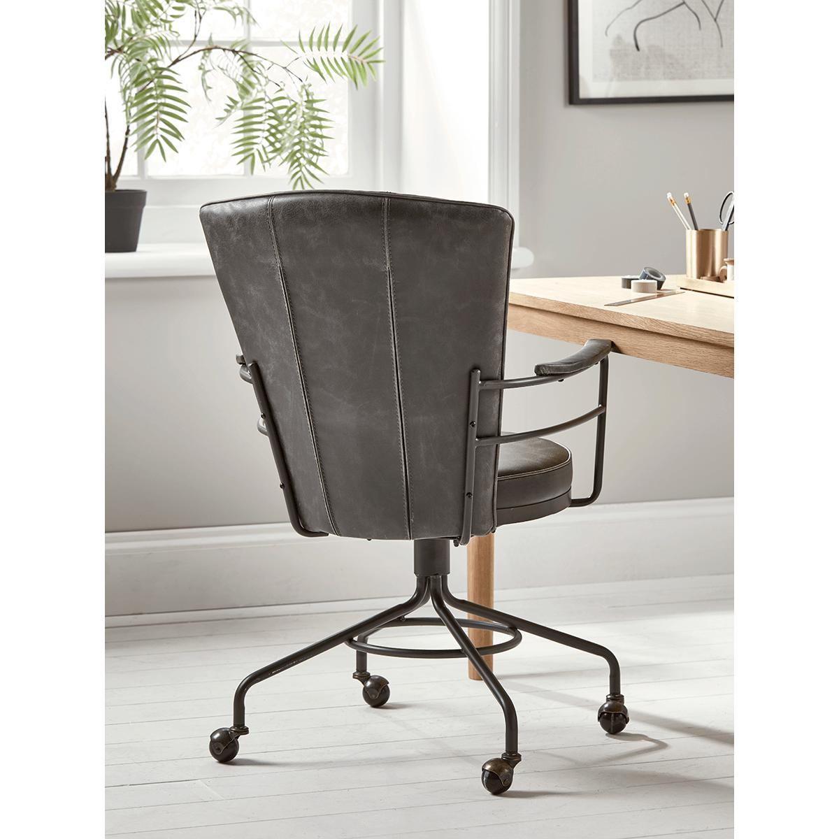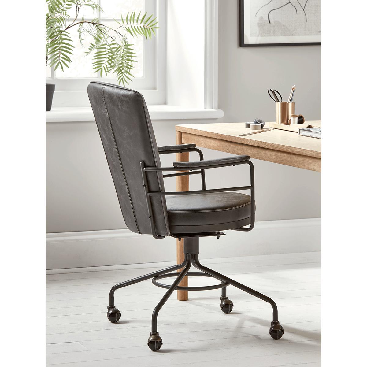 I love this office chair for its utilitarian charm and vintage industrial vibe. It works particularly well in spaces that combine raw, exposed materials like metal and wood, making it a great addition to (semi-)industrial, loft-style, or minimalist interiors. The leatherette seat adds a touch of sophistication while maintaining durability, and its adjustable height makes it functional for various desk setups. To style around it, consider pairing it with other metal and leather accents, like shelving or lighting, to enhance the industrial aesthetic. For practical tips, keep the colour palette neutral to let the character of the chair shine and ensure your workspace stays both functional and stylish.