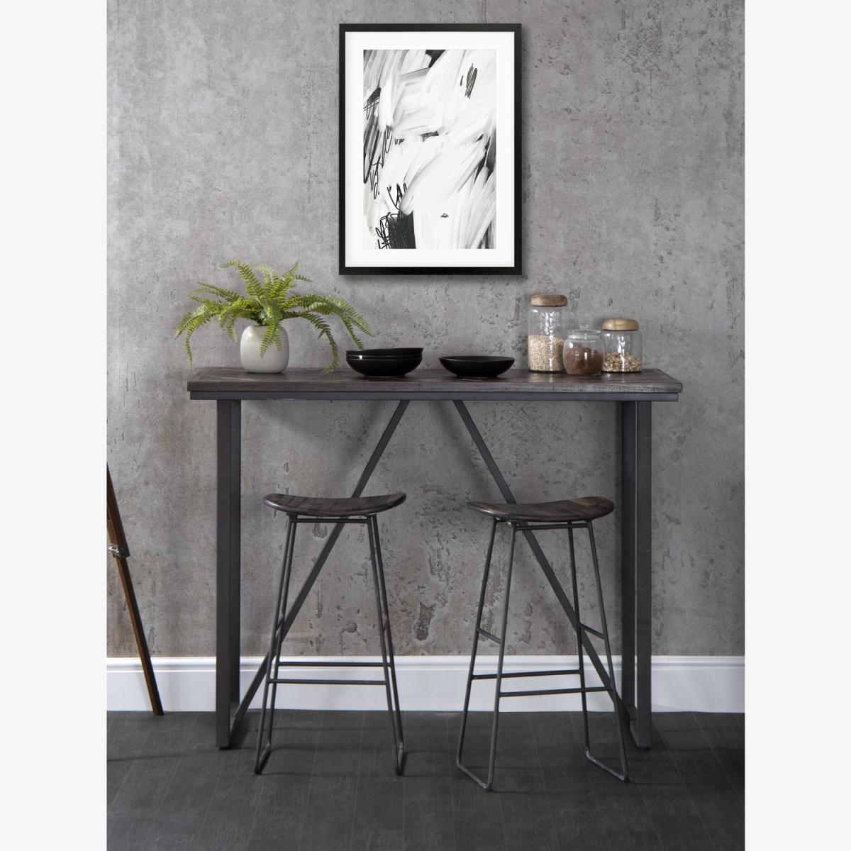 The industrial style teak and iron bar table is a versatile piece that works particularly well in modern lofts or urban environments where an industrial aesthetic is desired. Its teak top adds warmth and texture, balancing the coolness of the iron base, making it easy to incorporate into both casual and more dressed-up interiors. I love pairing it with minimalist or Scandinavian decor to highlight its raw, understated charm. Practical styling tips include accessorising with simple, functional items like woven placemats or metal trivets, and complementing it with mixed-metal or matte black accents for a cohesive look. The space underneath is ideal for adding sleek storage or decorative baskets, keeping things practical without disrupting the clean lines of the table.