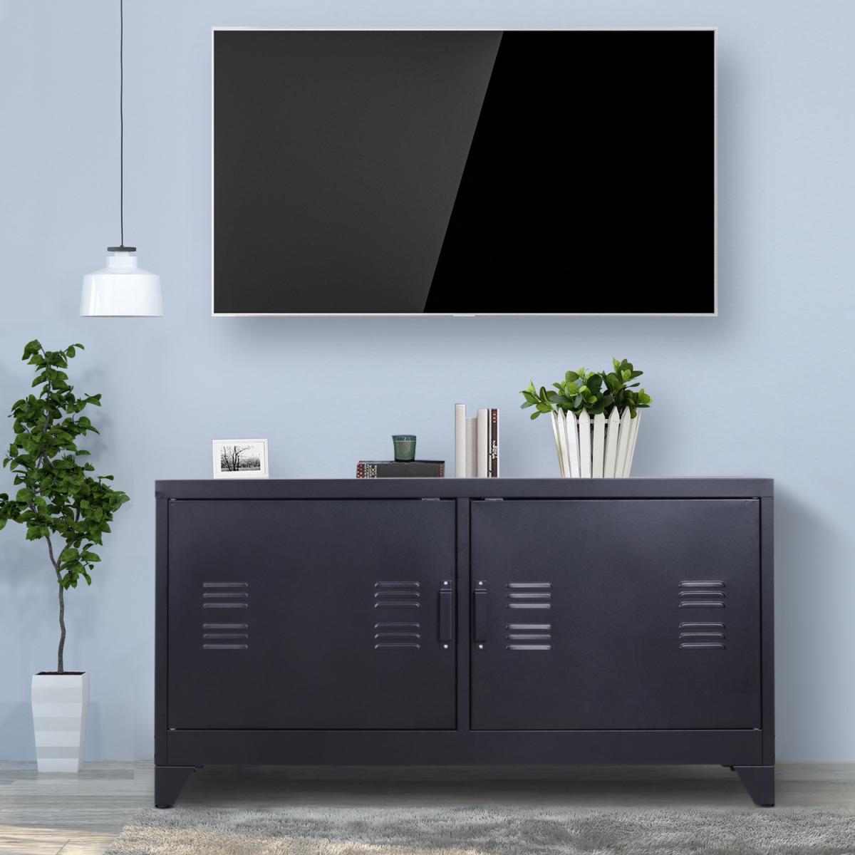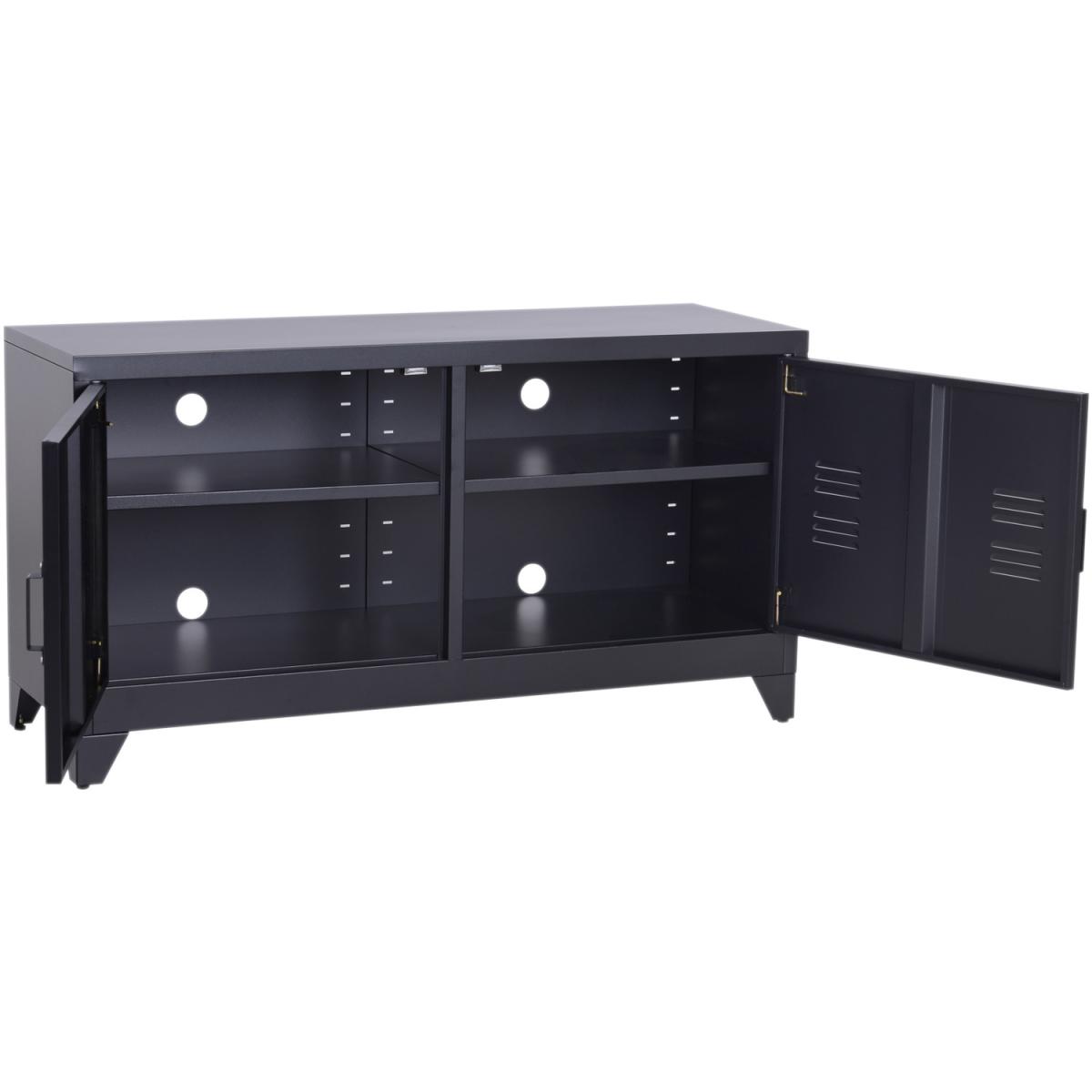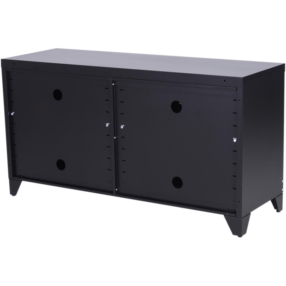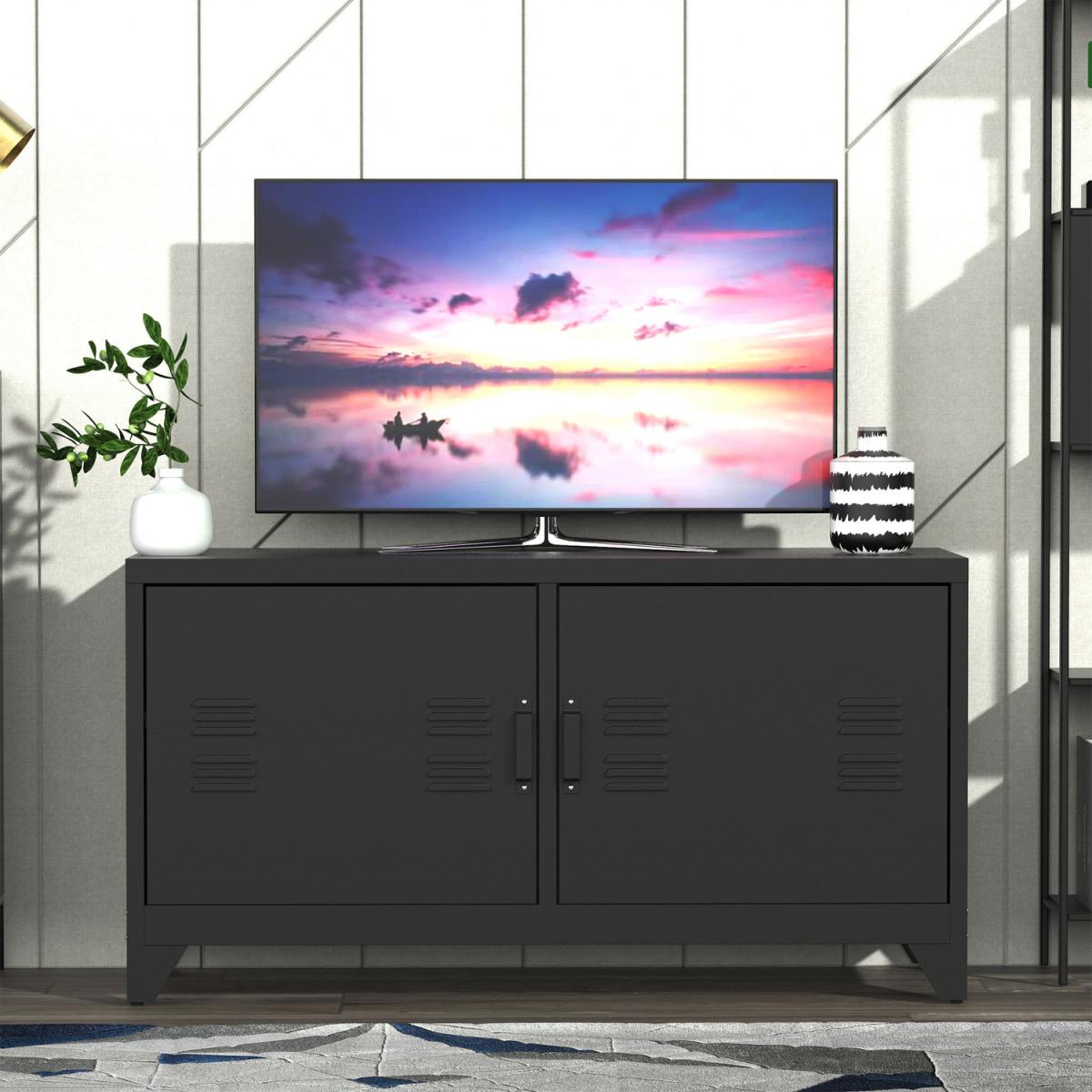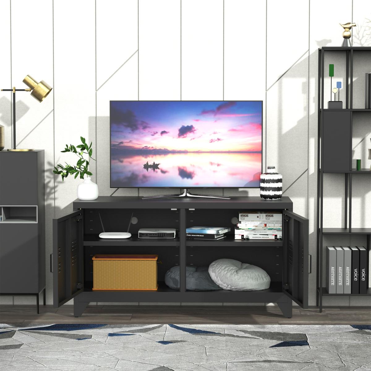 Industrial TV Cabinet Stand with Doors and Storage System - Black