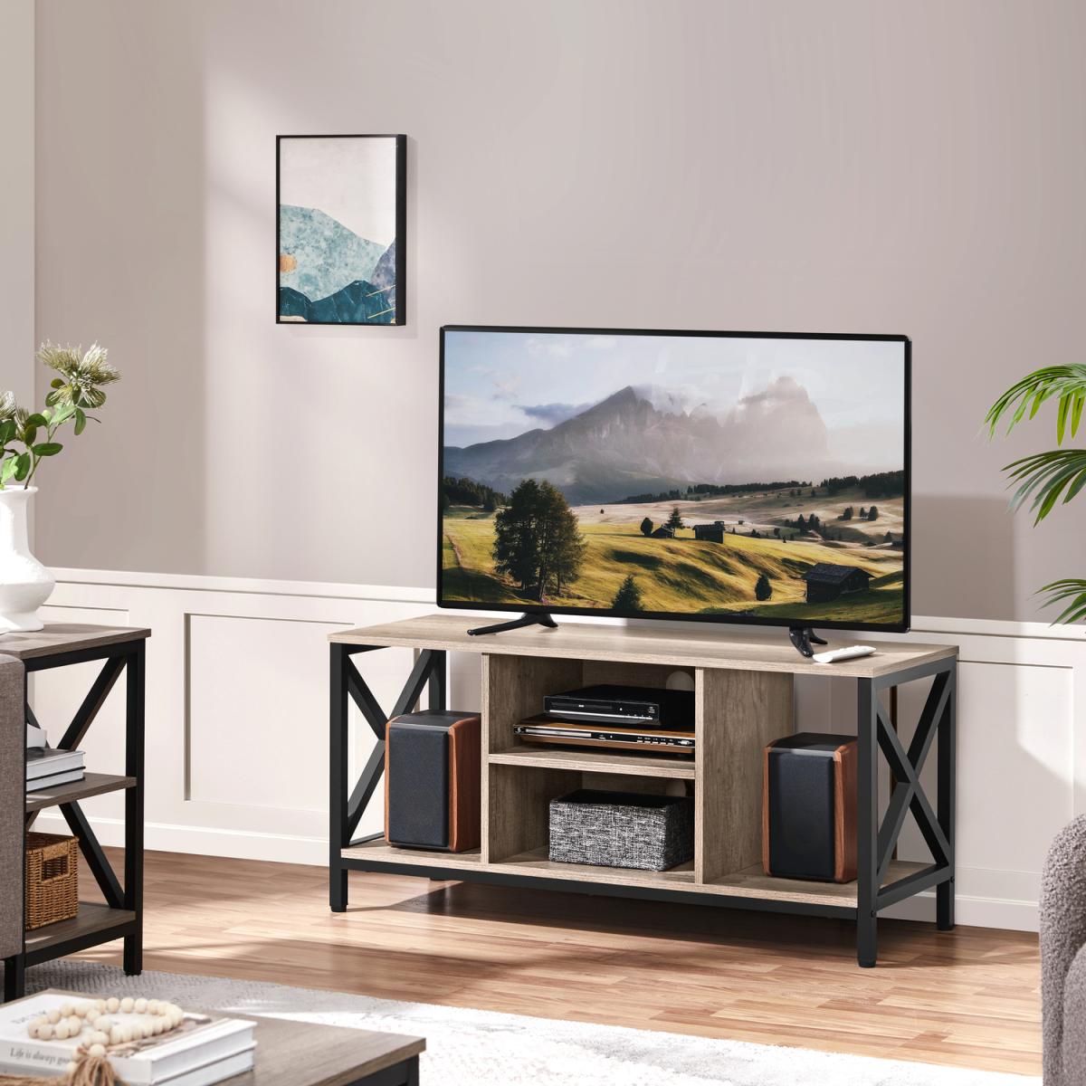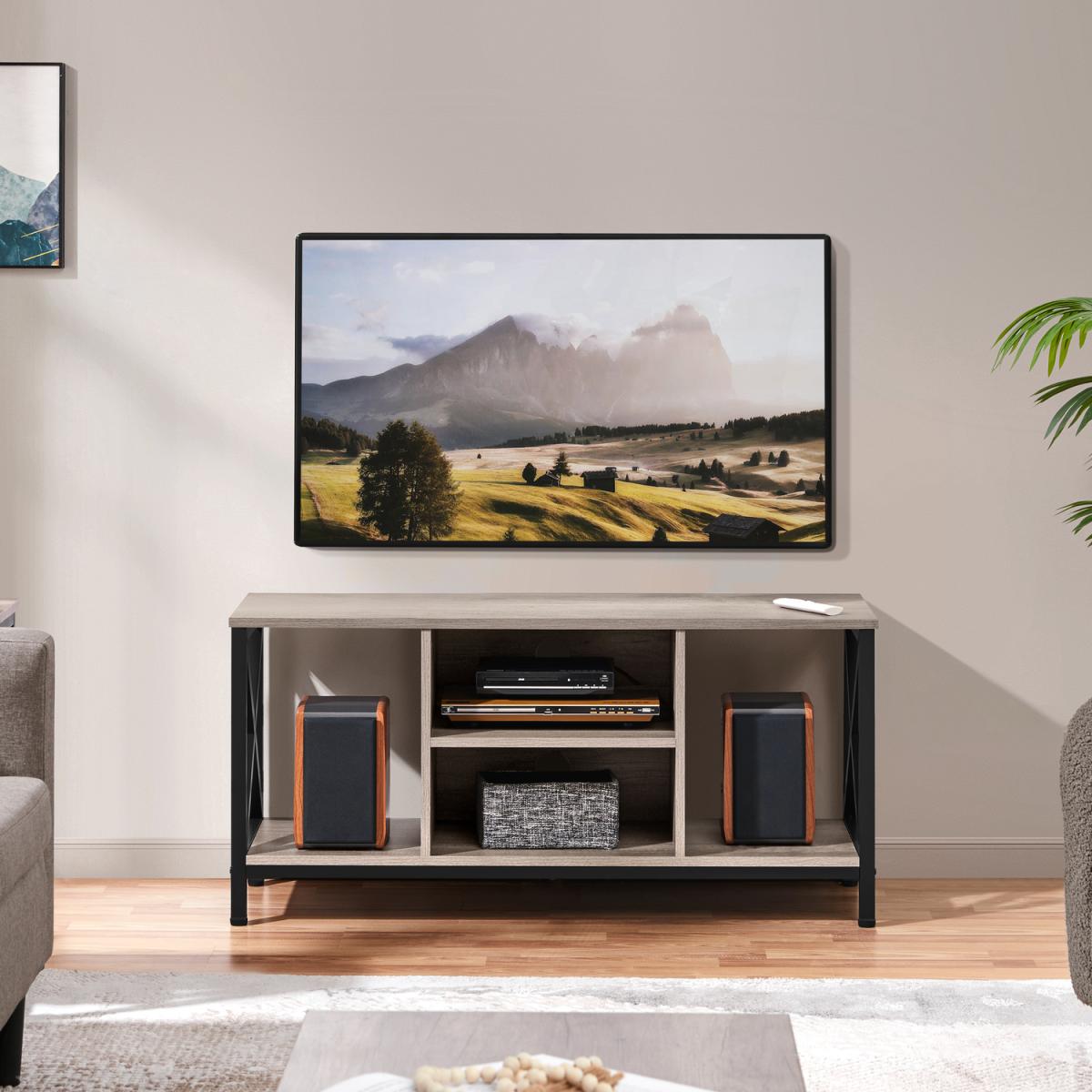 Industrial TV Stand with X-Shape Structures - Grey