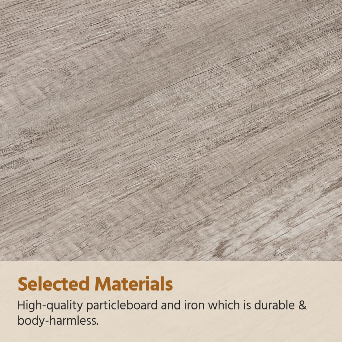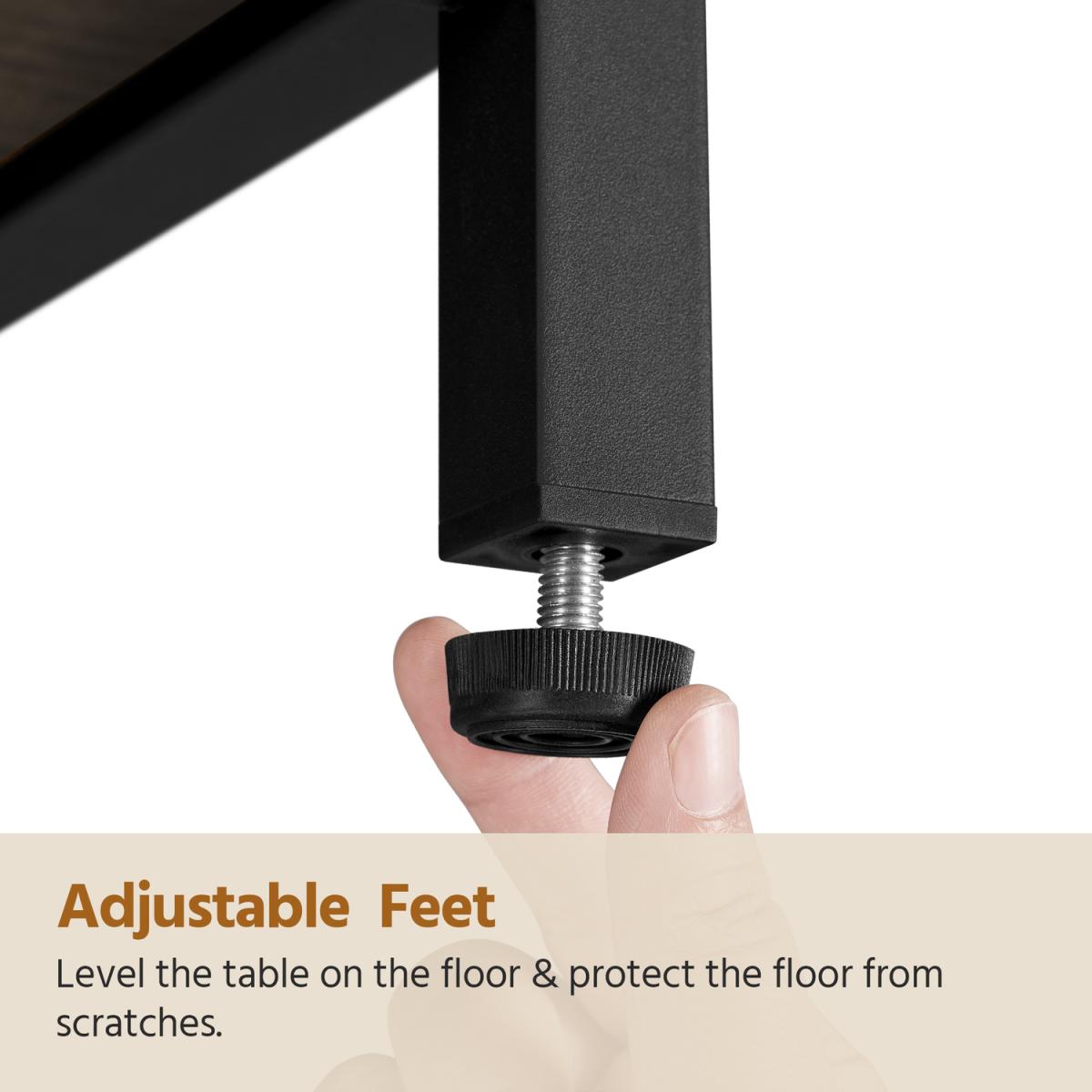 This industrial TV stand is perfect for your stylish house with a tasteful exterior design blending practical functions. The tabletop suits TVs up to 50. 4 open compartments can gather your items like photo frames, books, remote control, and game CDs. Crafted from powder-coated strong iron and premium engineered wood, it is a reassuring piece of furniture that can serve a long time.
