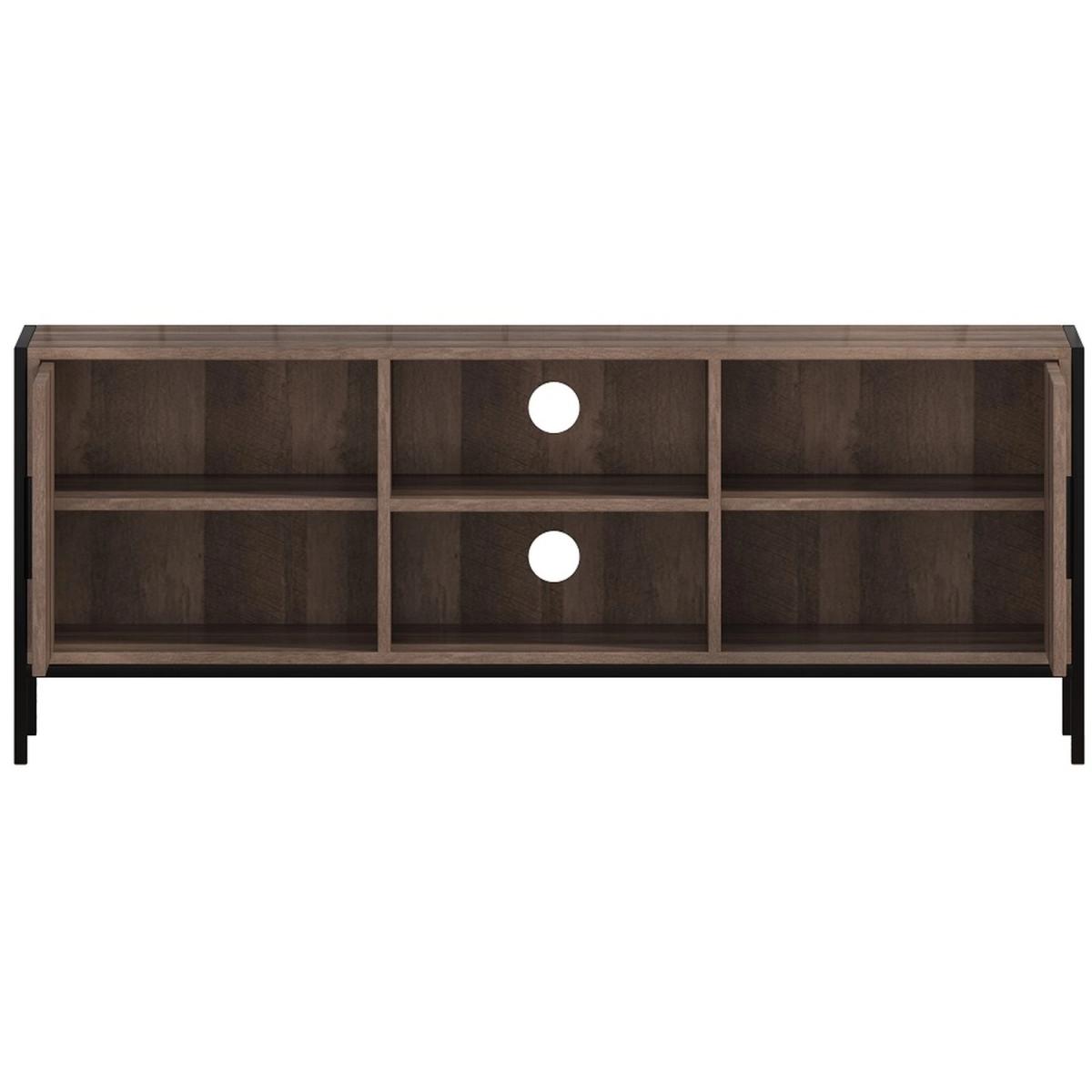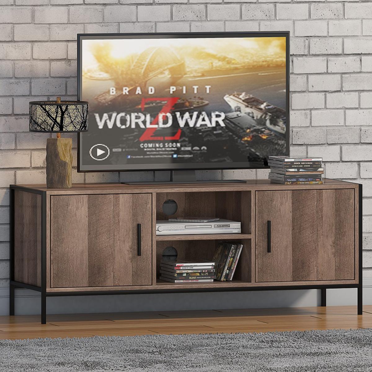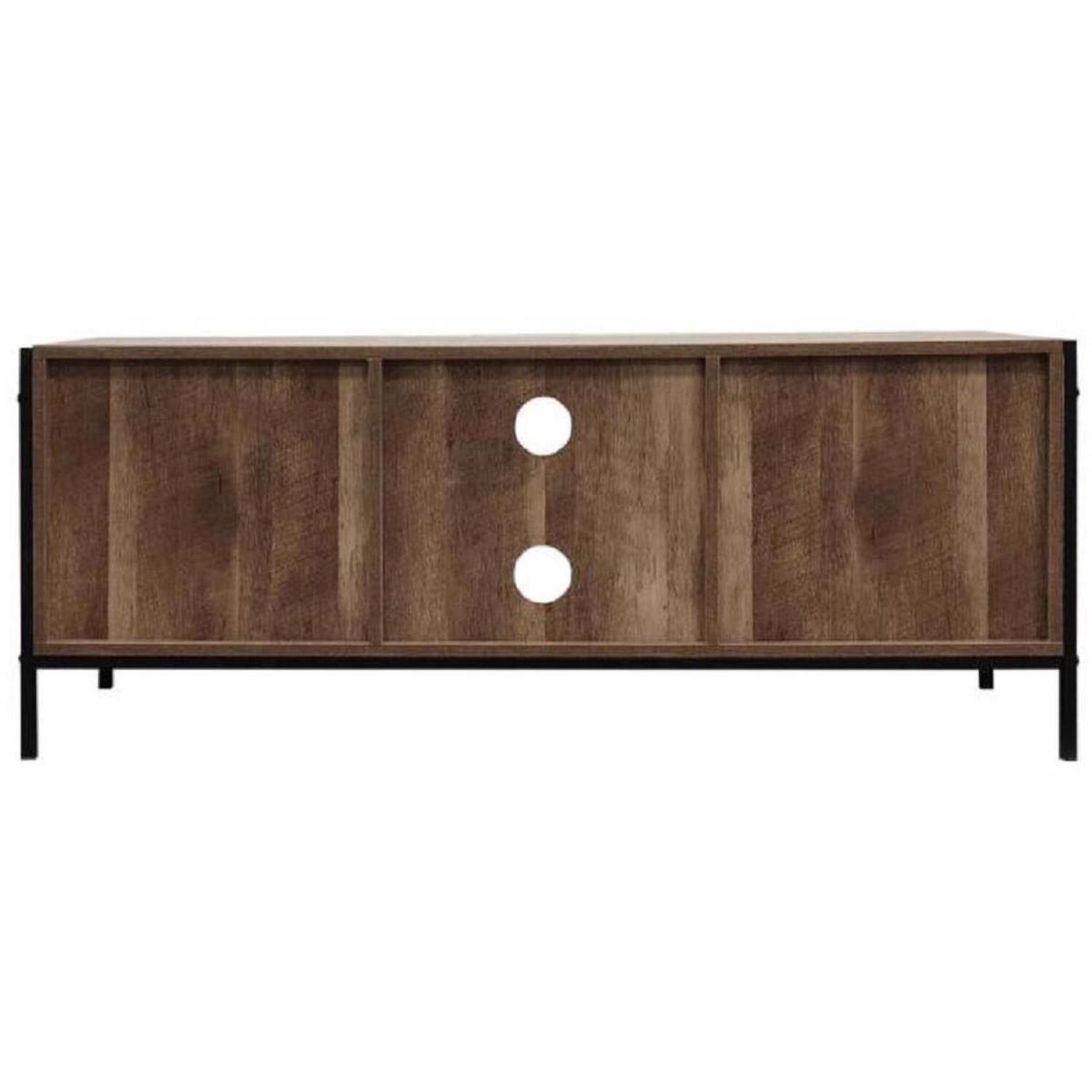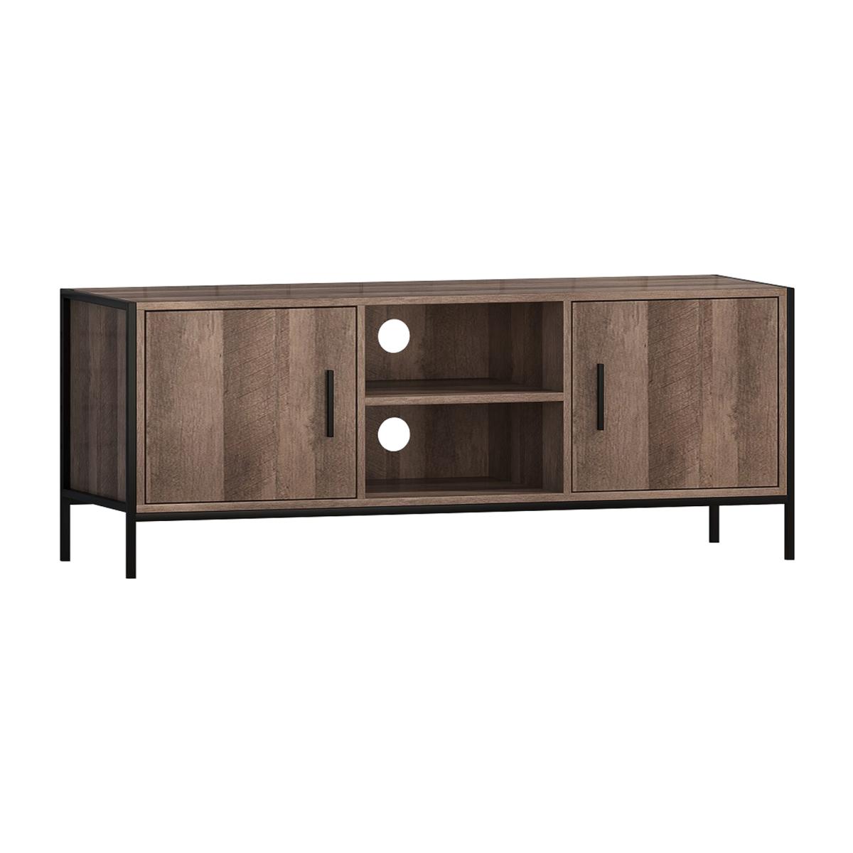 This Industrial style 2 Door TV Cabinet has a reclaimed wood effect and a black metal frame to enhance its rustic appeal. Practical as well as attractive, this Cabinet has 2 Side Doors with an internal shelf in each plus an open central section for your AV Equipment. Will hold up to a 60" TV. Attention to detail with matching drawer interior and back panel which has pre-drilled cable holes. Delivered flat-packed for home assembly.