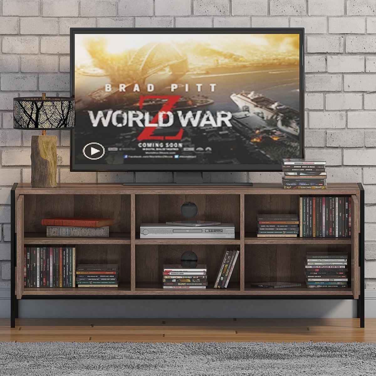 I love this industrial TV unit for its sturdy, contemporary look that easily complements both modern and rustic interiors. Its brown finish brings warmth to minimalist living rooms or open-plan spaces, while the metal accents add an edgy, industrial feel. It works particularly well in loft-style or Scandinavian-inspired schemes, where raw materials are celebrated. For styling tips, try layering decorative books, plants, or metallic accessories on top, and utilise the open shelving for organising your media devices or displaying statement pieces. Keep clutter to a minimum to allow the unit’s strong design features to stand out, and consider pairing it with matching furniture for a cohesive look.