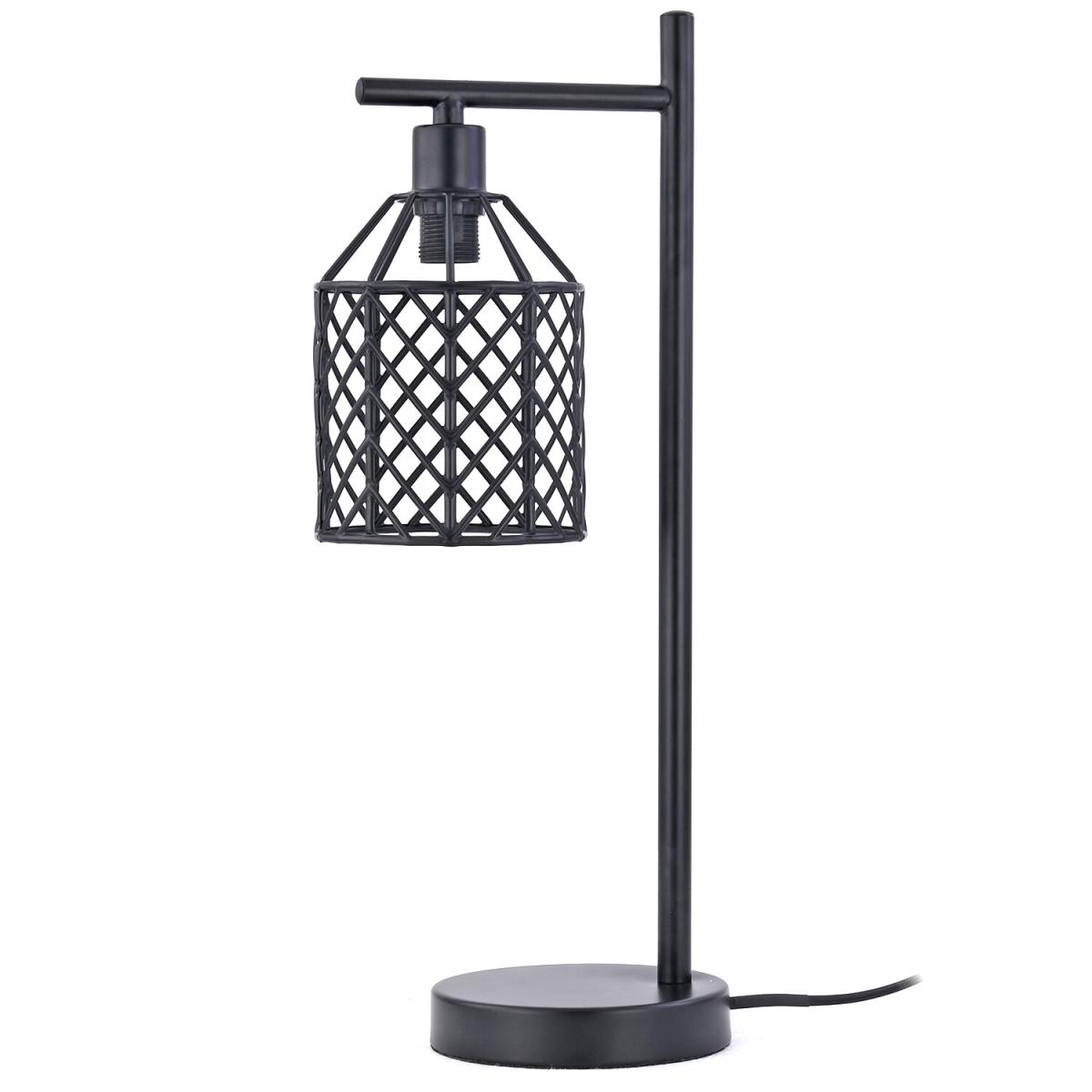 Bring a sense of antique moodiness to your home with the Industrial Weaved Table Lamp. Designed to mimic old fashioned lanterns, this metal table light features a black cage hanging from the top bar, in which you can screw the bulb so light will stream through the gaps to bring a lovely glow to your bedroom or living room.