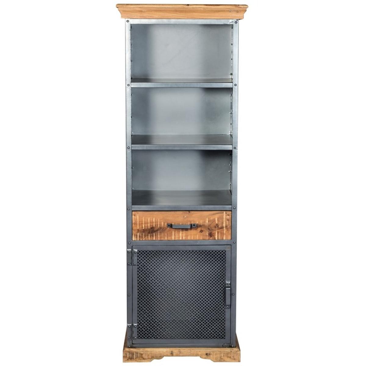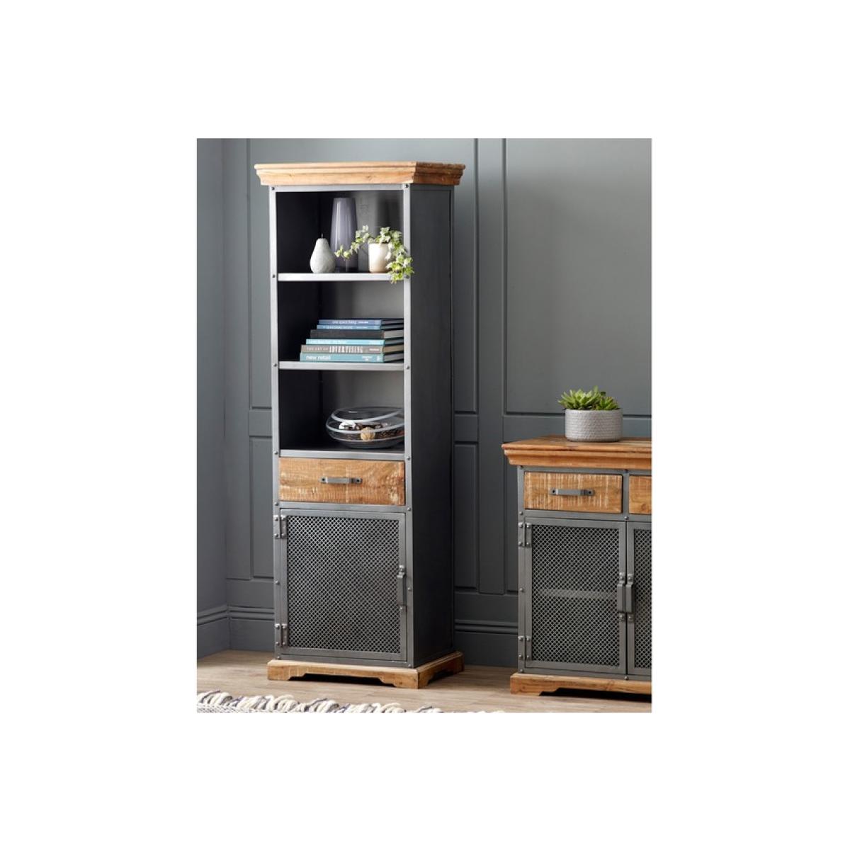 Industrial Wood and Metal Narrow Bookcase - Grey