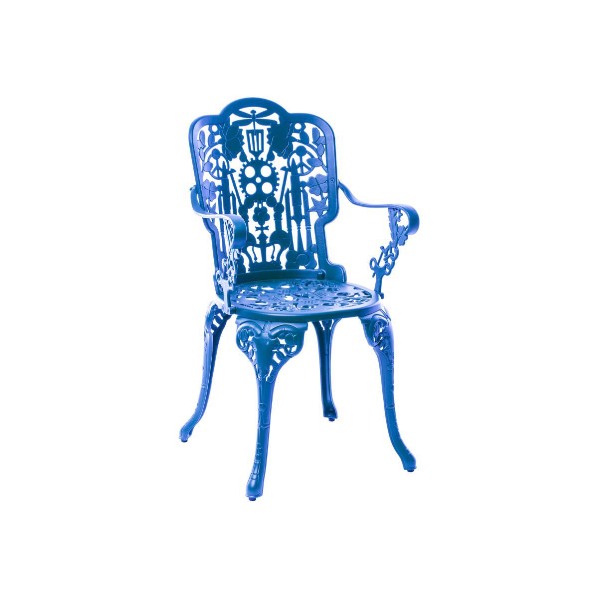 Industry Garden is a rock'n'roll collection, both bonkers and baroque at the same time, that Studio Job created for Seletti. The chairs, armchairs and tables in the range are entirely made of epoxy lacquered cast aluminium. Available in several colours and set off with a matt finish, the different elements can be matched and combined as you please, depending on whether you want a uniform or polychrome garden set. The sculptural appearance of each model - stylised from top to bottom and with a rare sense of detail - is what gives it its elegance. You’ll love the intentionally kitsch designs (flowers, butterflies, hearts or 'peace and love' logos) that appear in the metallic lacework of each model.