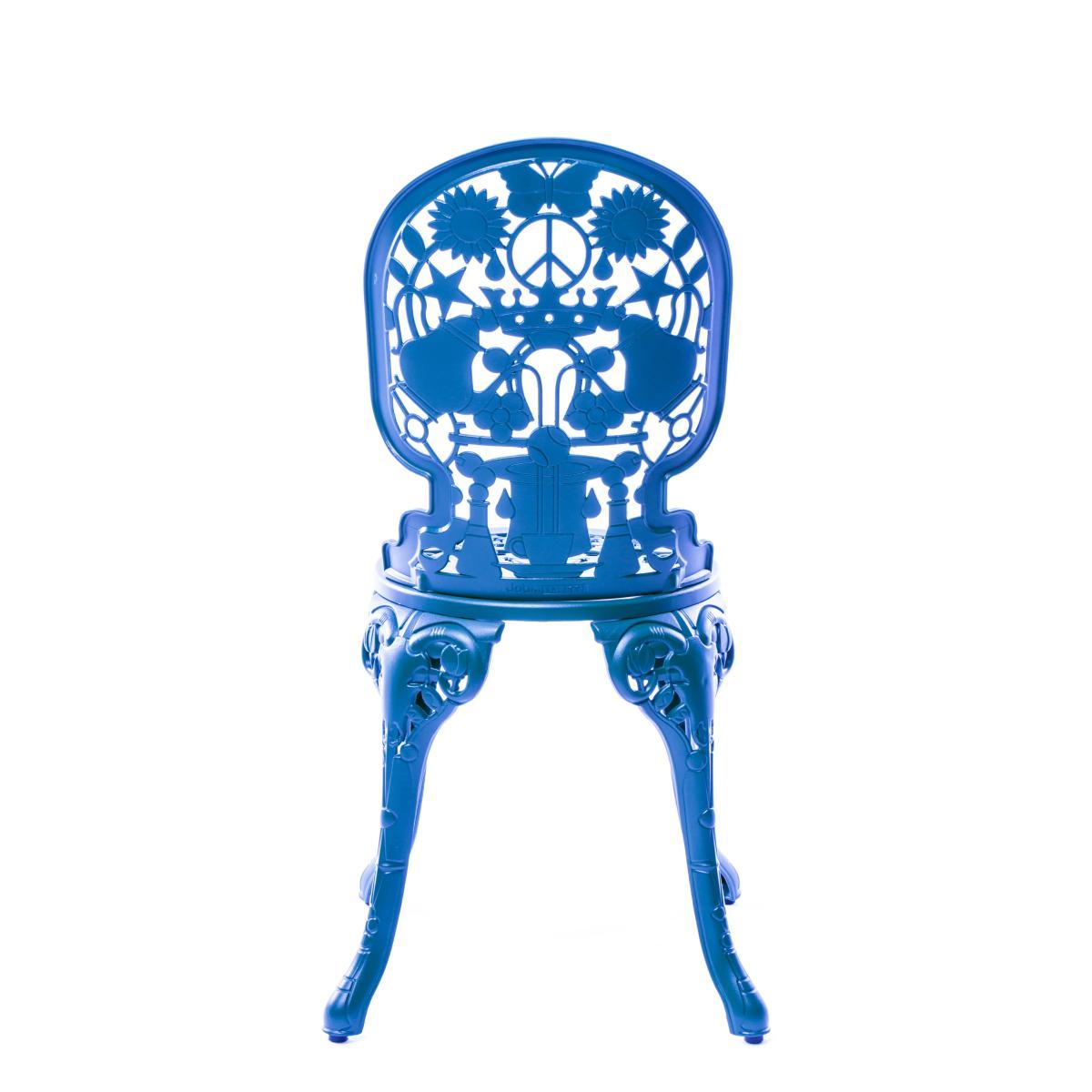 Industry Garden is a rock'n'roll collection, both bonkers and baroque at the same time, that Studio Job created for Seletti. The chairs, armchairs and tables in the range are entirely made of epoxy lacquered cast aluminium. Available in several colours and set off with a matt finish, the different elements can be matched and combined as you please, depending on whether you want a uniform or polychrome garden set. The sculptural appearance of each model - stylised from top to bottom and with a rare sense of detail - is what gives it its elegance. You’ll love the intentionally kitsch designs (flowers, butterflies, hearts or 'peace and love' logos) that appear in the metallic lacework of each model.