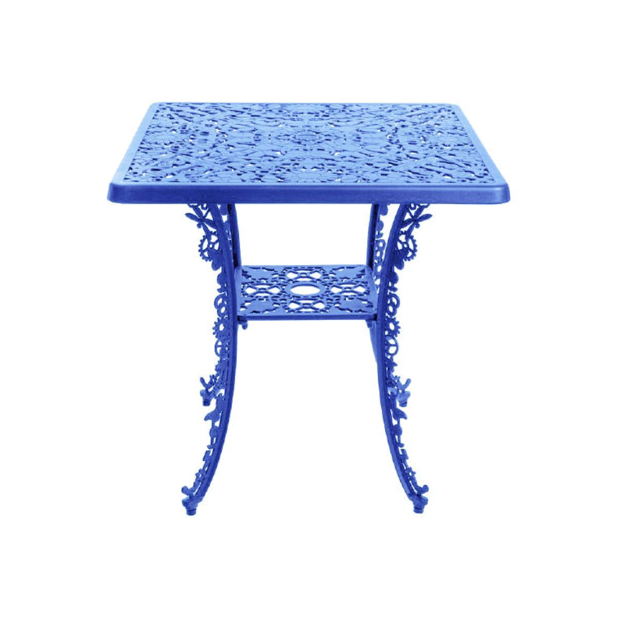 Studio Job brings together two free spirits, Job Smeets and Nynke Tynagel. The Flemish artist-designer couple work between the industrial world and the world of applied arts, creating projects, often as a limited edition, which combine the craft skills with an avant-garde, highly expressive language rich in symbols. The designer duo have created the Industry Garden collection for Seletti: garden furniture with a rock’n’roll style, crazy and baroque at the same time. Made of perforated cast aluminium, these pieces of furniture are entirely made of incredible metal lace with abundant patterns. Meticulous metal work: great art! The romantic, classic forms of Industry furniture are inspired by 19th-century Victorian wrought iron garden furniture. These "wise" bucolic forms, inscribed in the collective memory, are completely reinterpreted and "twisted" by a set of original nested patterns, emblematic of the work of Studio Job: an explosive mixture of flowers, cogs, peace and love signs, ram's heads, coffee cups… This complex ornamentation is teeming with interlocking designs which are symbols waiting to be deciphered. The singular patterns are inspired by the duality of the human being: on the one hand, the hard worker who uses tools and machines to produce efficiently, and on the other, the philosopher who constantly seeks to give meaning to his life and the world around him. Machines, nature, philosophy, life and death all mix in this graphic world which reproduces the chaotic, mysterious, colourful character of life. These quirky, current graphics bring a serious facelift to the garden furniture of our ancestors. Durable and light, Industry Garden furniture can be used outdoors.