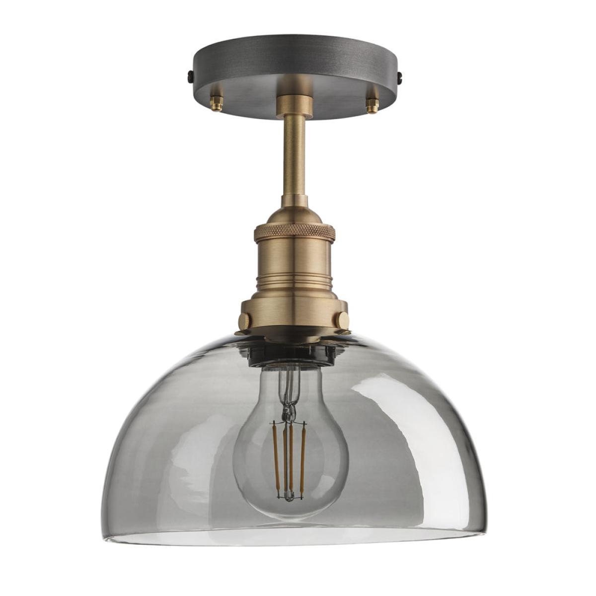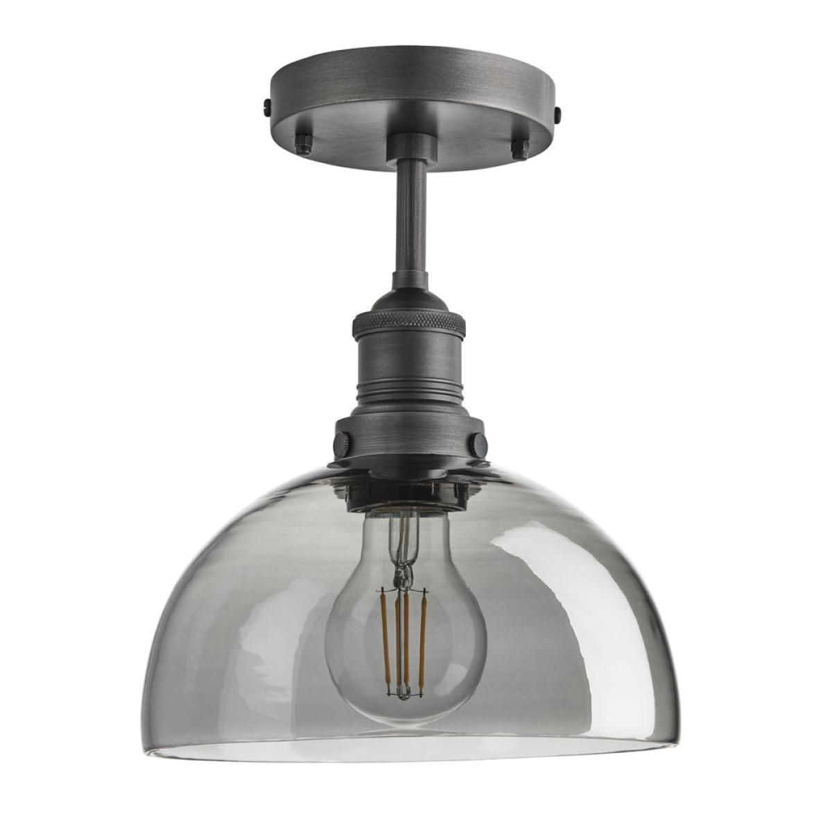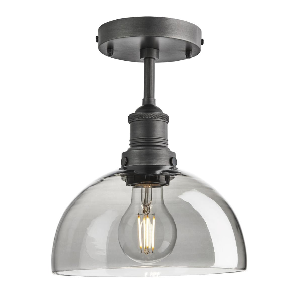 Industville Brooklyn 8 Inch Dome Flush Mount / Smoke Grey Tinted Glass and Pewter Holder