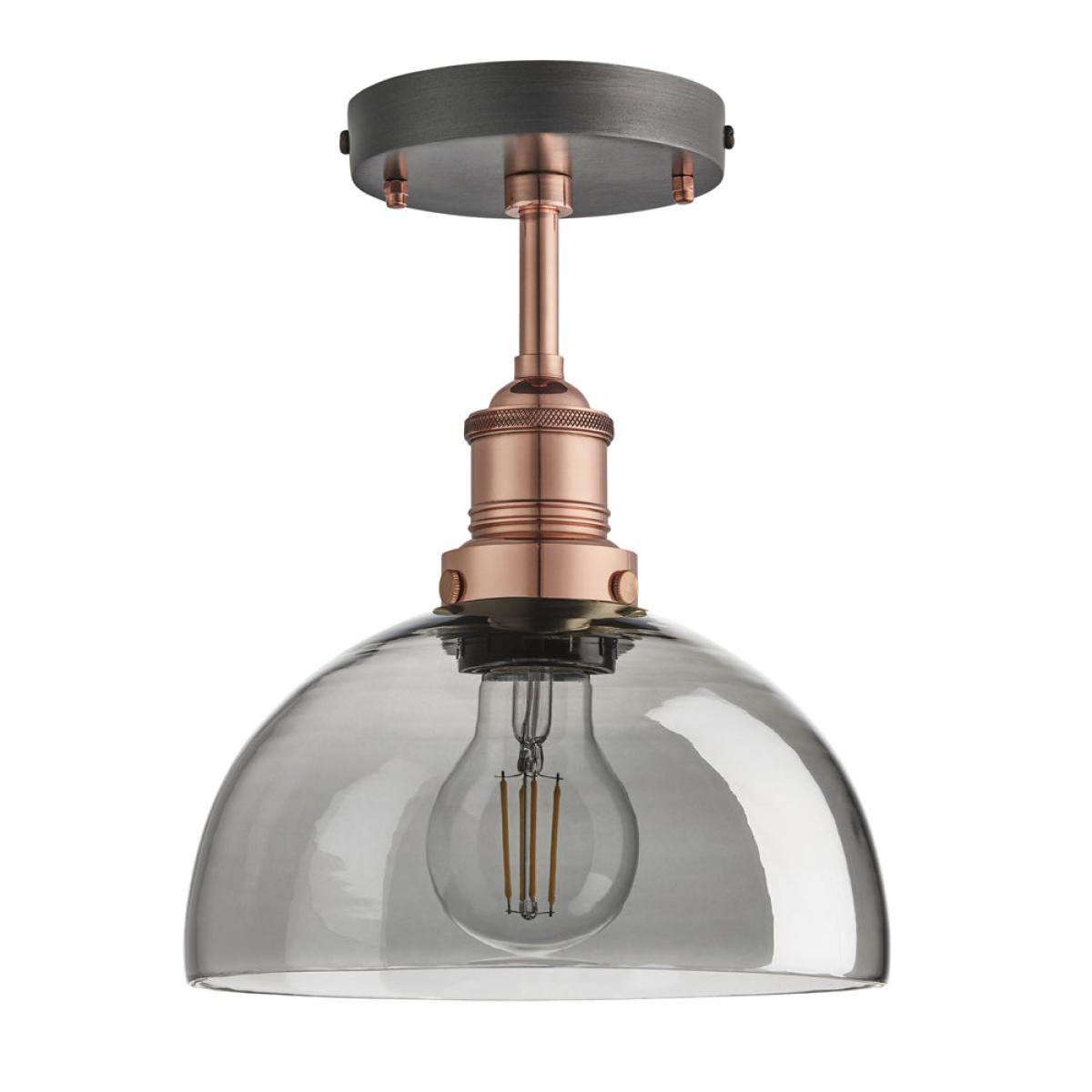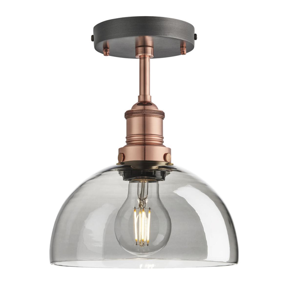I love how this Brooklyn dome light combines industrial charm with a touch of sophistication thanks to the smoked grey glass and pewter hold­er. It works particularly well in urban or loft-style interiors, where its utilitarian look can really stand out, but it can also blend seamlessly into more contemporary spaces for a subtle yet statement lighting option. Practical styling tips include pairing it with minimalist furniture and natural textures to let the fixture shine, or creating a contrasting focal point in a more neutral room. Its flush mount design makes it perfect for lower ceilings, and keeping the colour palette in cool grey, black, or brushed metals will enhance its industrial appeal.