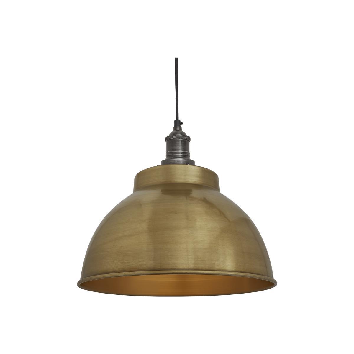 A popular option for putting the spotlight on worktops or counters is the Brooklyn Dome Pendant. This product comes with 1m of Black Round Fabric Flex, which can be adjusted accordingly. Our Brooklyn Dome range lights blend in with almost any kind of décor from Modern Urban to Farmhouse, complementing both the classic and contemporary. These Lights are IP20 rated. SHAPE: Dome. FINISH: Brass. SHADE MATERIAL: Brass with a protective lacquer. HOLDER MATERIAL: Pewter finish - Brass material. SHADE: Diameter: 33 cm , Height (no holder): 21 cm. HOLDER: DPCN Diameter: 9 cm, DPCN Height: 12. 5 cm. CEILING ROSE: Diameter: 12 cm Height: 2 cm. *Moot Trading Ltd is not a lender and acts only as an introducer. The credit product is provided by Klarna Bank AB (publ). Credit is only available to permanent UK residents aged 18 and over, subject to status. Terms and conditions apply. Please note that the following products are not regulated by the FCA: Pay in 30 days and Pay in 3 instalments. Read More.