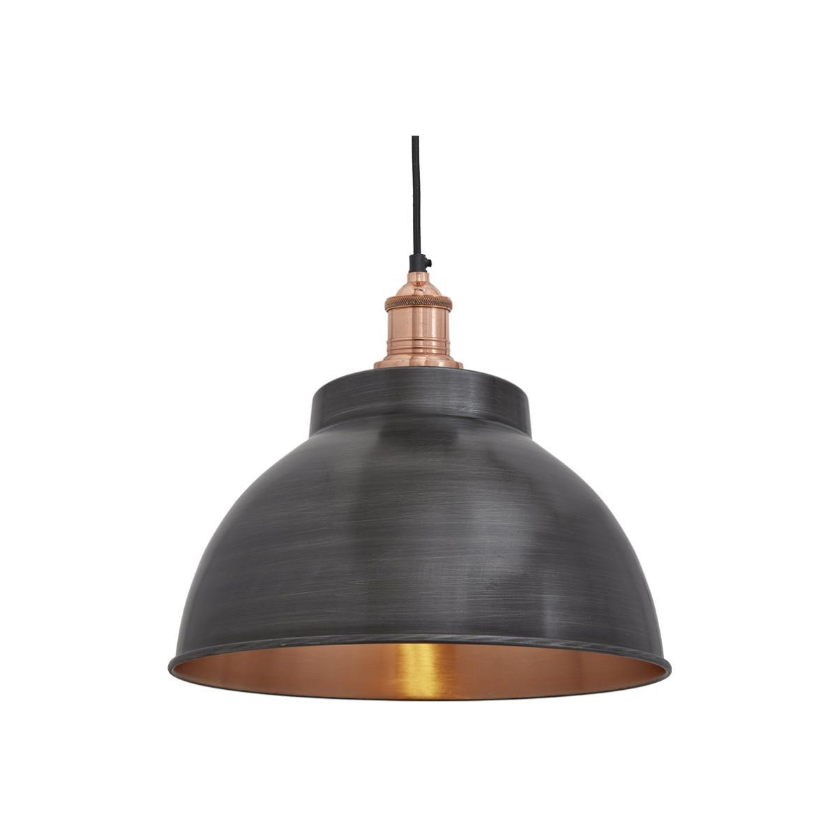 With a diameter of 33 cm, this sleek domed pewter and copper pendant is primed to make the perfect impression in a variety of contemporary spaces. The pewter-toned domed shade has been given a unique textured finish, which gives dimension to the piece and provides an additional layer of visual interest that will make its mark in the right space. The interior of the shade has been finished in a shiny copper material, which expertly intensifies the warm glow emitted by the bulb. A rose gold hued fitting completes this multi-tonal lighting solution, which will work within bedrooms, formal dining areas, and cosy living spaces. *Moot Trading Ltd is not a lender and acts only as an introducer. The credit product is provided by Klarna Bank AB (publ). Credit is only available to permanent UK residents aged 18 and over, subject to status. Terms and conditions apply. Please note that the following products are not regulated by the FCA: Pay in 30 days and Pay in 3 instalments. Read More.