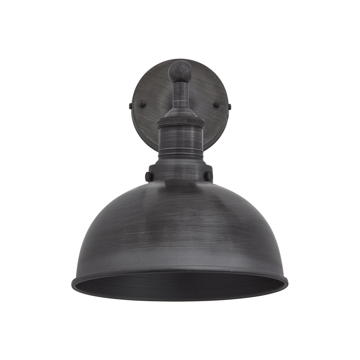 This handcrafted Brooklyn Dome Wall Light works particularly well when mounted in pairs or groups of three, and you can make the lighting yours by choosing from an array of Wall Holders. Brooklyn Dome range Lights blend in with almost any kind of décor from Modern Urban to Farmhouse, complementing both the classic and contemporary. These Lights are IP20 rated. SHAPE: Dome FINISH: PewterSHAD. E MATERIAL:Iron with a protective lacquerHOLDE. R MATERIAL:Pewter finish- Brass material All images property of Industville Dimensions:W:20 x D:28 x H:26.5cm SHADE: Diameter: 20 cm x Height (no holder): 10 cm HOLDER:Diameter: 6 cm x Height: 18 cm ROSE: Diameter: 12 cm x Height: 2 cm SHADE MATERIAL:Pewter with a protective lacquer HOLDER MATERIAL:Brass finish - Brass material