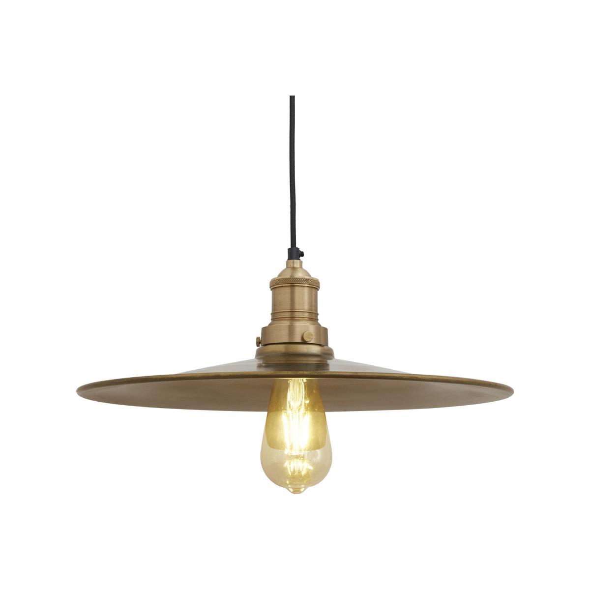 Industville Brooklyn Flat Pendant - 15 Inch - Brass Shade Brass Holder / Brass Holder