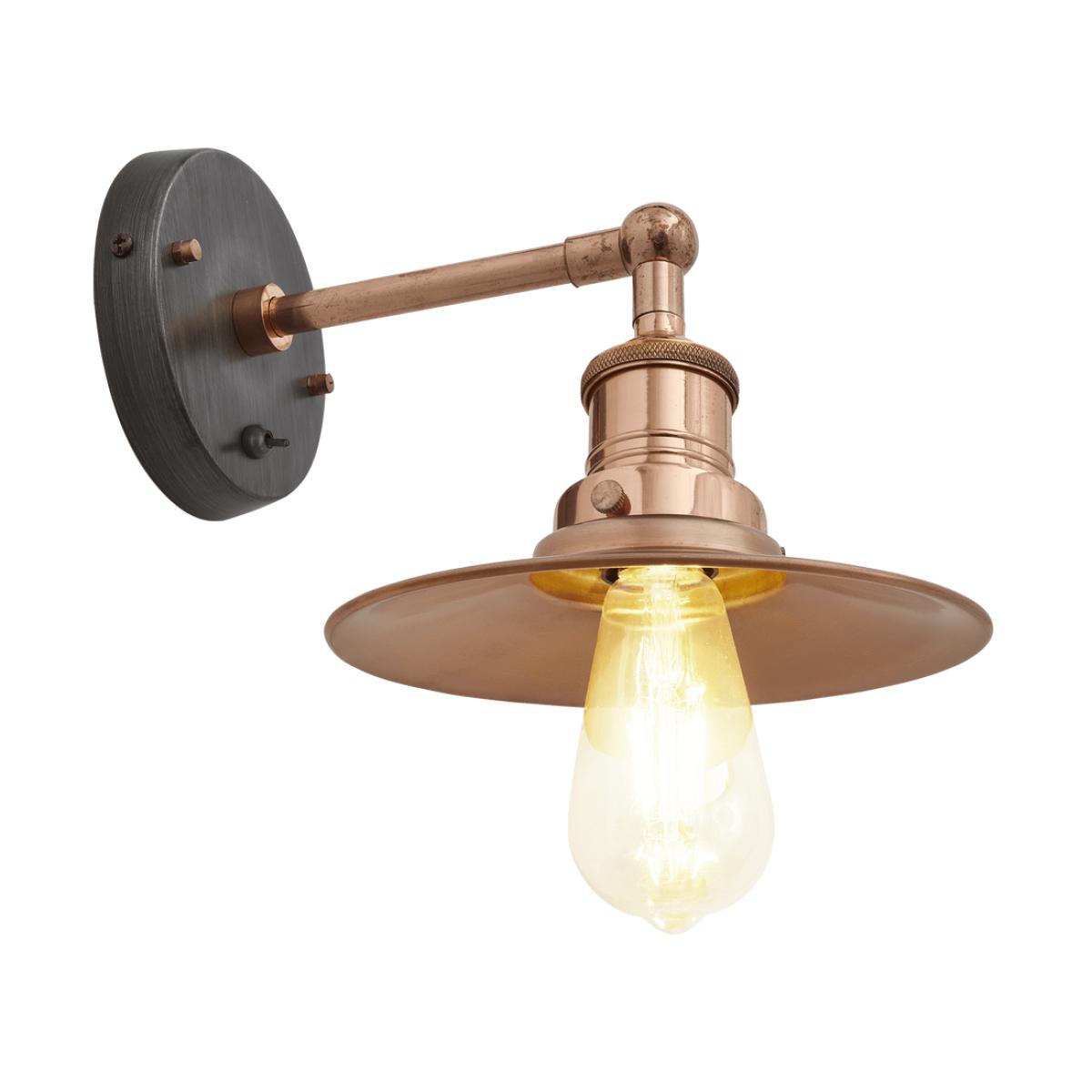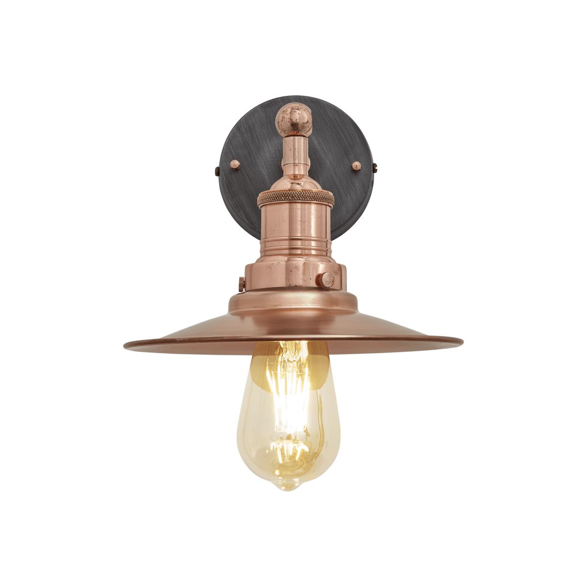 The industrial trend is transforming the interiors of homes and business around the UK and beyond. Our Brooklyn Flat 8-inch Wall Lights, when used together, particularly when arranged in groups of two, makes for an urban setting that is truly harmonised. These Products are IP20 rated. All images property of Industville SHAPE: Flat FINISH: Copper HEIGHT X WIDTH X DEPTH: 21.5 cm x 21 cm x 28.5 cm SHADE: Diameter: 21 cm / 8.2", Height (no holder): 5 cm / 2" HOLDER:Diameter: 6 cm / 2.5", Height: 18 cm / 7.1" CEILING ROSE:Diameter: 12 cm / 4.9", Height: 2 cm / 0.8" SHADE MATERIAL: Copper with a protective lacquer