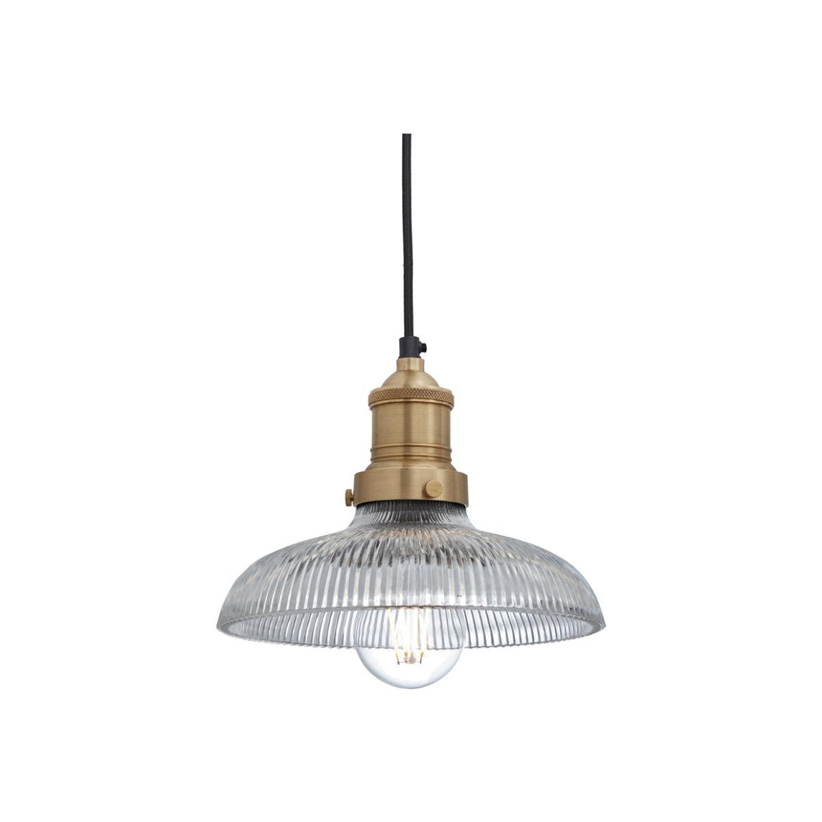 The Industville Brooklyn glass dome pendant offers a modern twist on a traditional look. The thick quality cord can be adjusted to suit individual ceiling heights with a maximum drop of 18. 5cm. The light fitting is a modern brushed brass and the glass pendant is textured with thick lines, offering a lovely magical light. The dome itself only half covers the bulb, allowing for maximum light in the room. This lovely pendant would suit a dining space, office area or a dark corridor or landing. It is ideal for both modern or traditional designed homes and is timeless in its design. *Moot Trading Ltd is not a lender and acts only as an introducer. The credit product is provided by Klarna Bank AB (publ). Credit is only available to permanent UK residents aged 18 and over, subject to status. Terms and conditions apply. Please note that the following products are not regulated by the FCA: Pay in 30 days and Pay in 3 instalments. Read More.