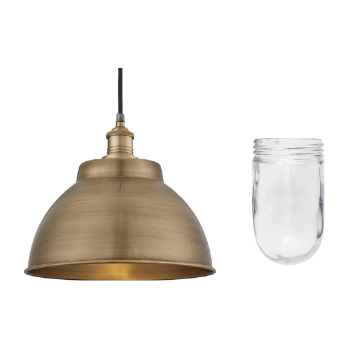 The popular Brooklyn Dome Pendant is now available for outside use, meaning you can transform your exterior spaces for the best kind of first impression. The versatile light comes with 1m of black plastic flex, and can be suspended at your desired or required length. The vintage light creates the perfect ambience for whatever the occasion, be it alfresco-style dining or a night under the stars. Industrial-styled outdoor lighting is sure to be a stylish addition to any home, and the brass finish will work exceptionally well with wooden beams. These lighting are rated IP20, IP44 & IP65, making them a durable option that can withstand the elements. SHAPE: Dome. FINISH: Brass. SHADE MATERIAL: Brass with a protective lacquer with glass fitting. Brass will naturally age over time, for an original and beautiful vintage lighting feel. SHADE: Diameter: 33 cm x Height (no holder): 21 cm. HOLDER: Diameter: 6 cm x Height: 11 cm. CEILING ROSE: Diameter: 13. 7 cm x Height: 3 cm. GLOBE GLASS: Diameter: 15cm x Height: 17cm. HOLDER CORD SET: Pewter ceiling rose, E27 bulb holder, 1m Black Plastic Flex. *Moot Trading Ltd is not a lender and acts only as an introducer. The credit product is provided by Klarna Bank AB (publ). Credit is only available to permanent UK residents aged 18 and over, subject to status. Terms and conditions apply. Please note that the following products are not regulated by the FCA: Pay in 30 days and Pay in 3 instalments. Read More.