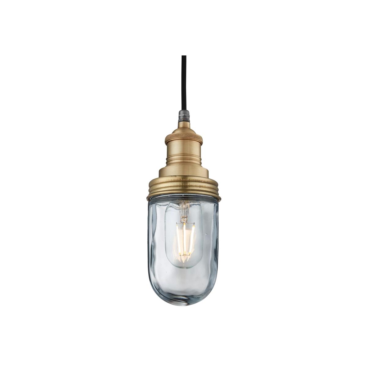 Industville Brooklyn Outdoor/Bathroom Glass Pendant Ceiling Light, Brass
