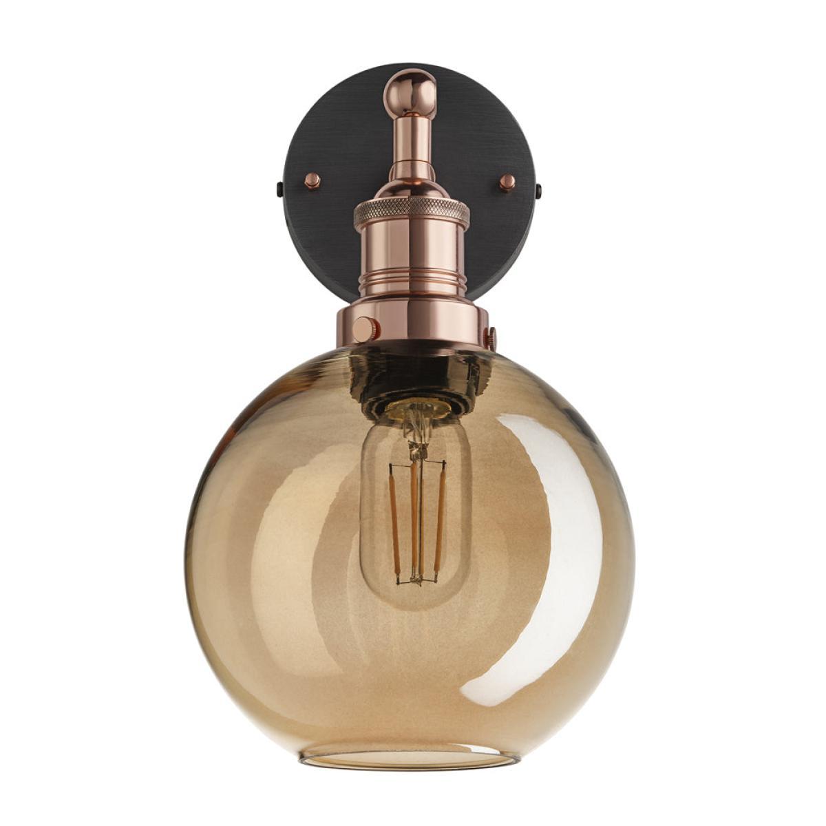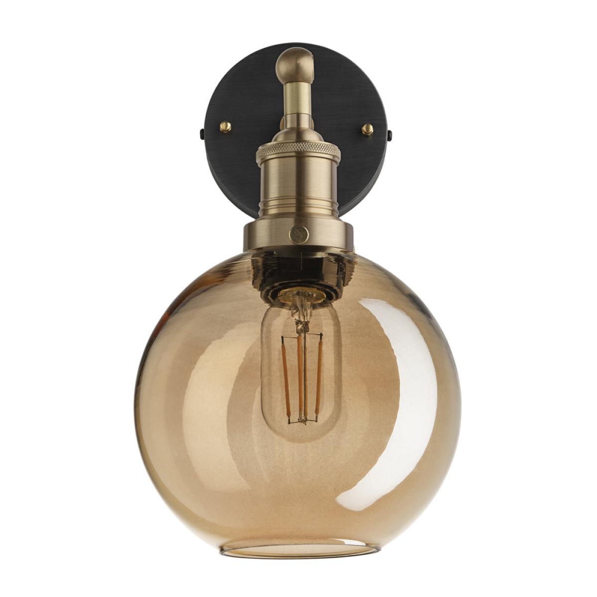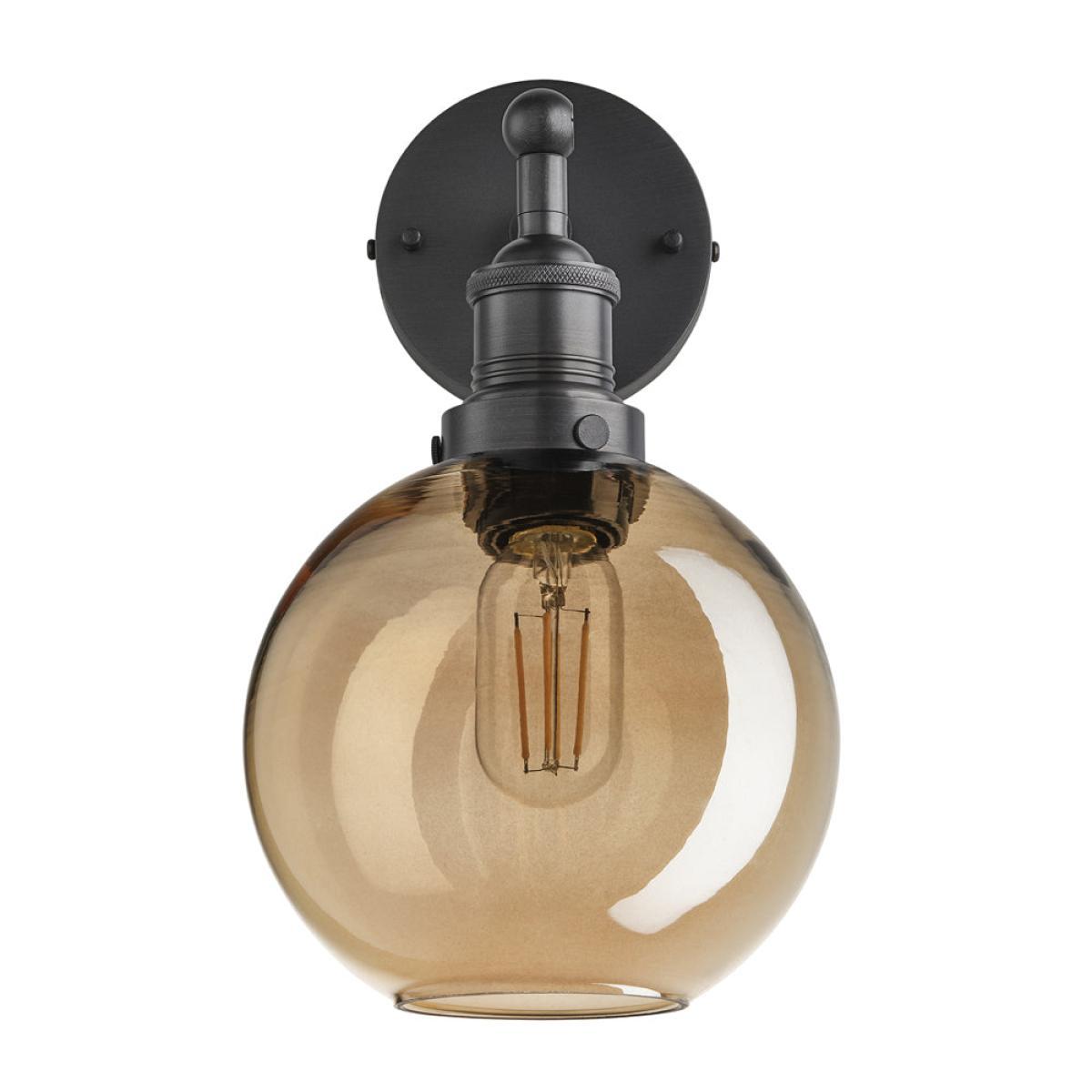 Industville Brooklyn Tinted Glass Globe Amber Wall Light / 7 Inch Pewter Holder